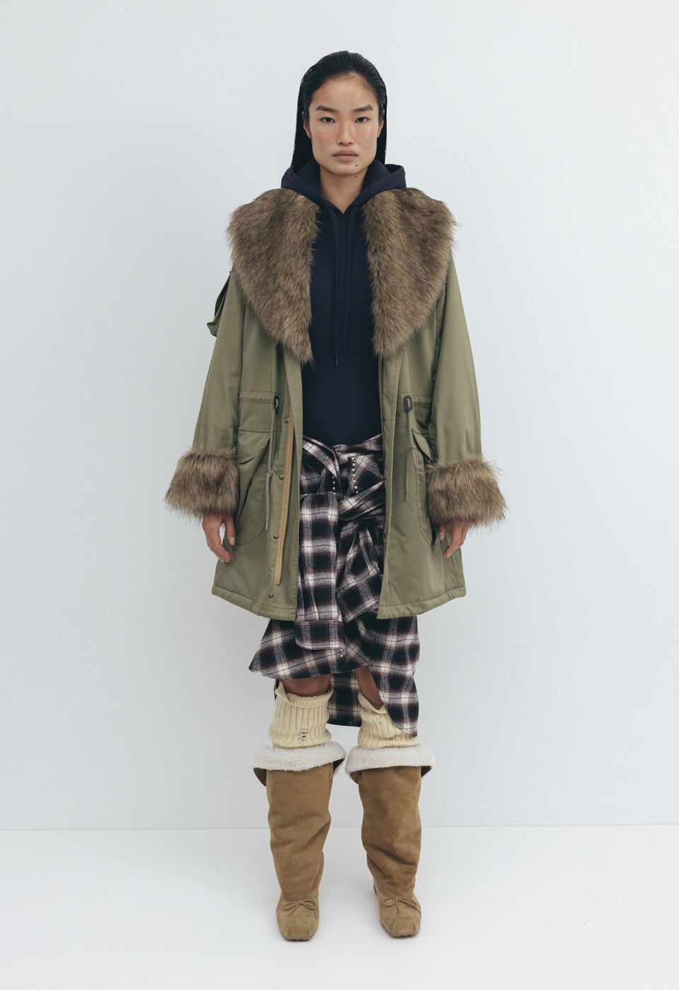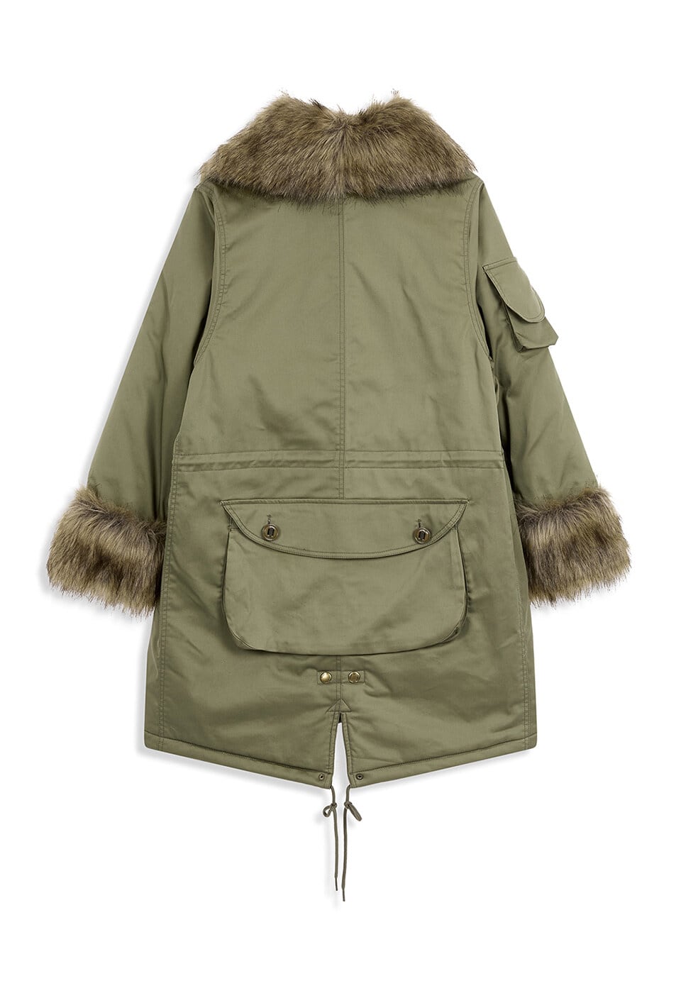 [OPEN YY] FAUX FUR TRIMMING SAFARI JACKET, KHAKI