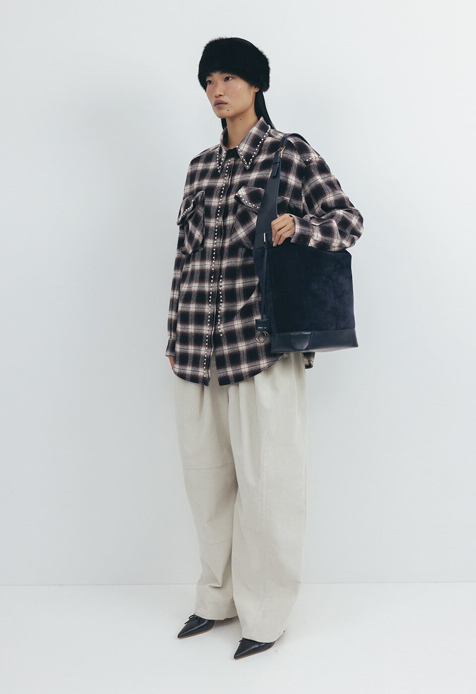 [OPEN YY] BEADED POCKET SHIRT, CHECKERED BROWN 正規品 韓国ブランド 韓国通販 韓国代行 韓国ファッション オープン ワイワイ 日本 店舗
