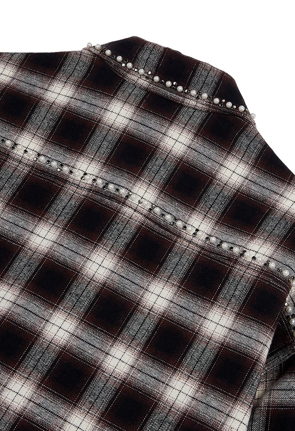 [OPEN YY] BEADED POCKET SHIRT, CHECKERED BROWN