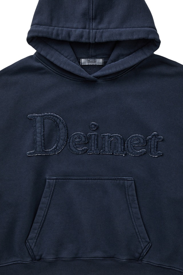 [DEINET] MUDDY PATCH LOGO CROP HOODIE IN NAVY 正規品 韓国ブランド 韓国通販 韓国代行 韓国ファッション デイネット ダイニット 日本 店舗