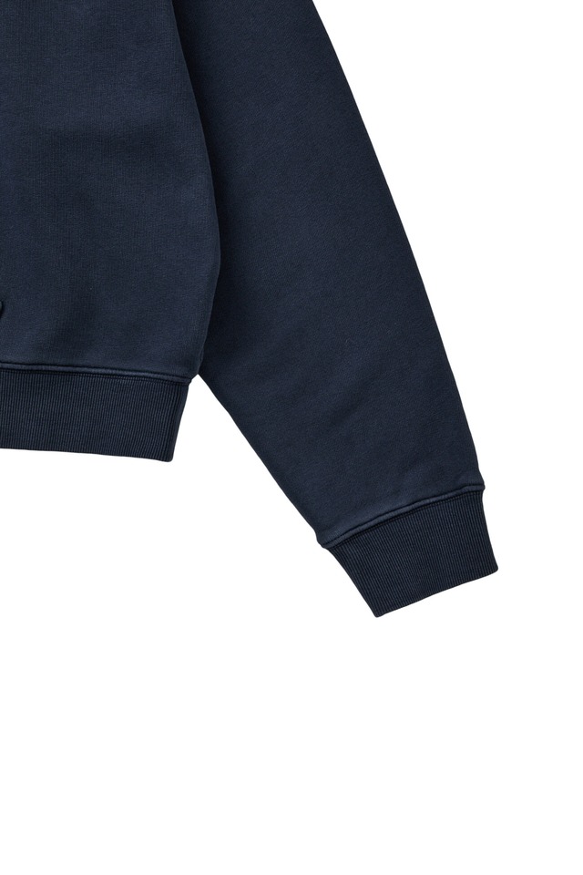 [DEINET] MUDDY PATCH LOGO CROP HOODIE IN NAVY