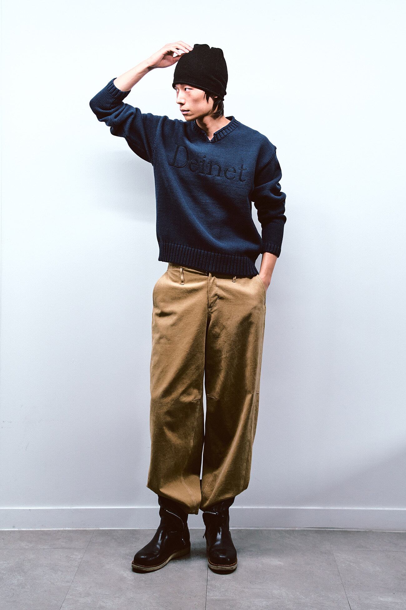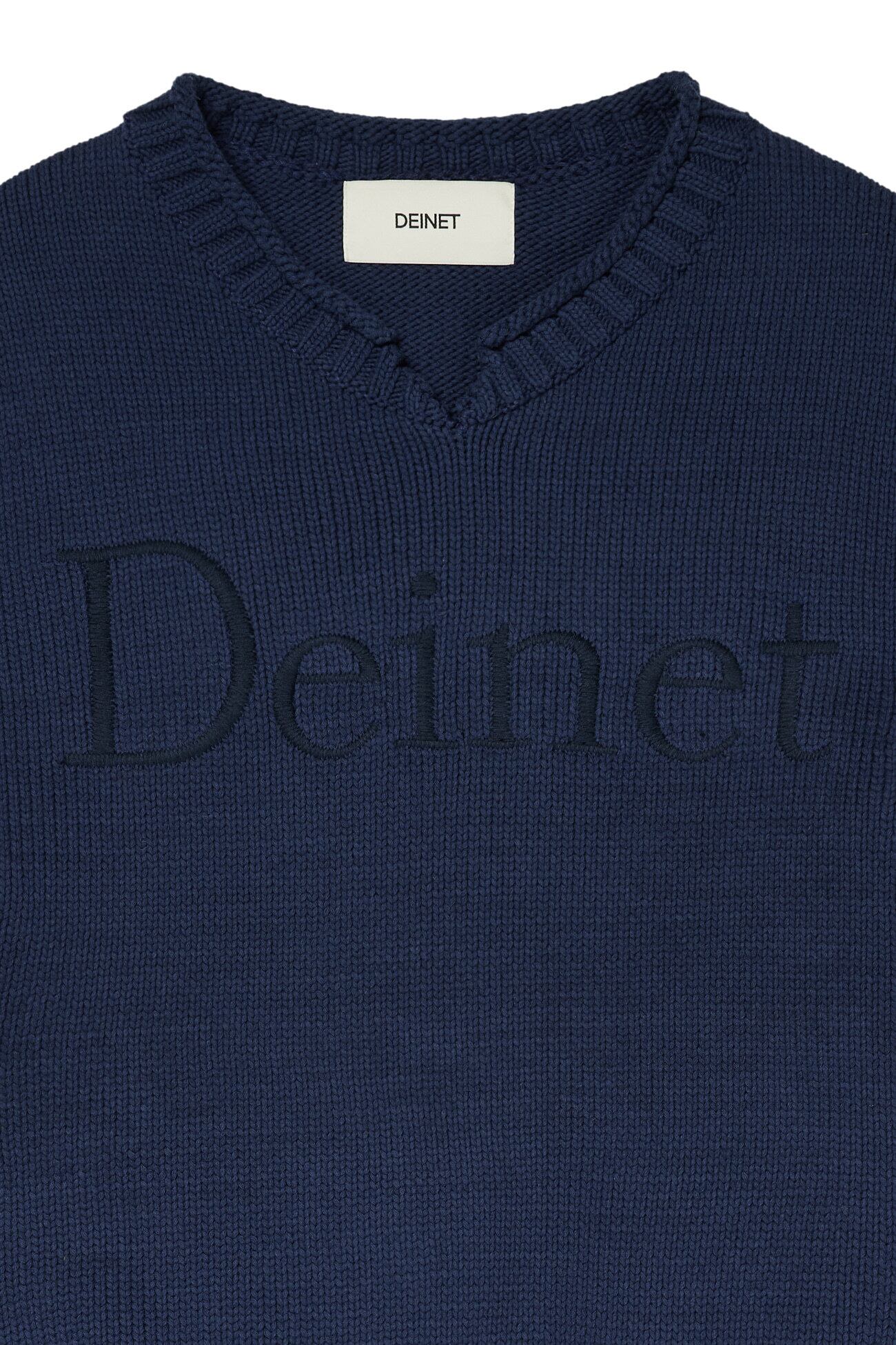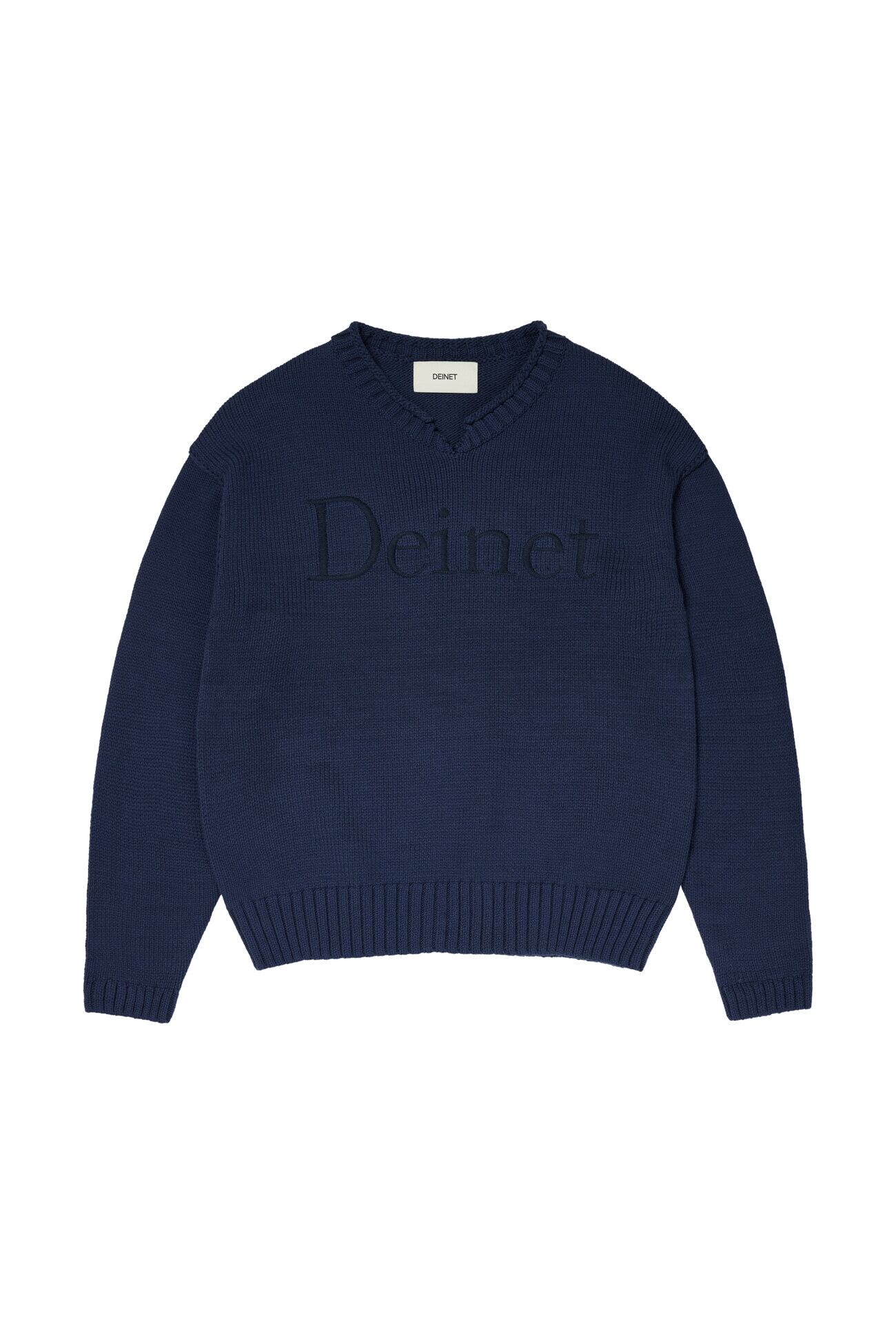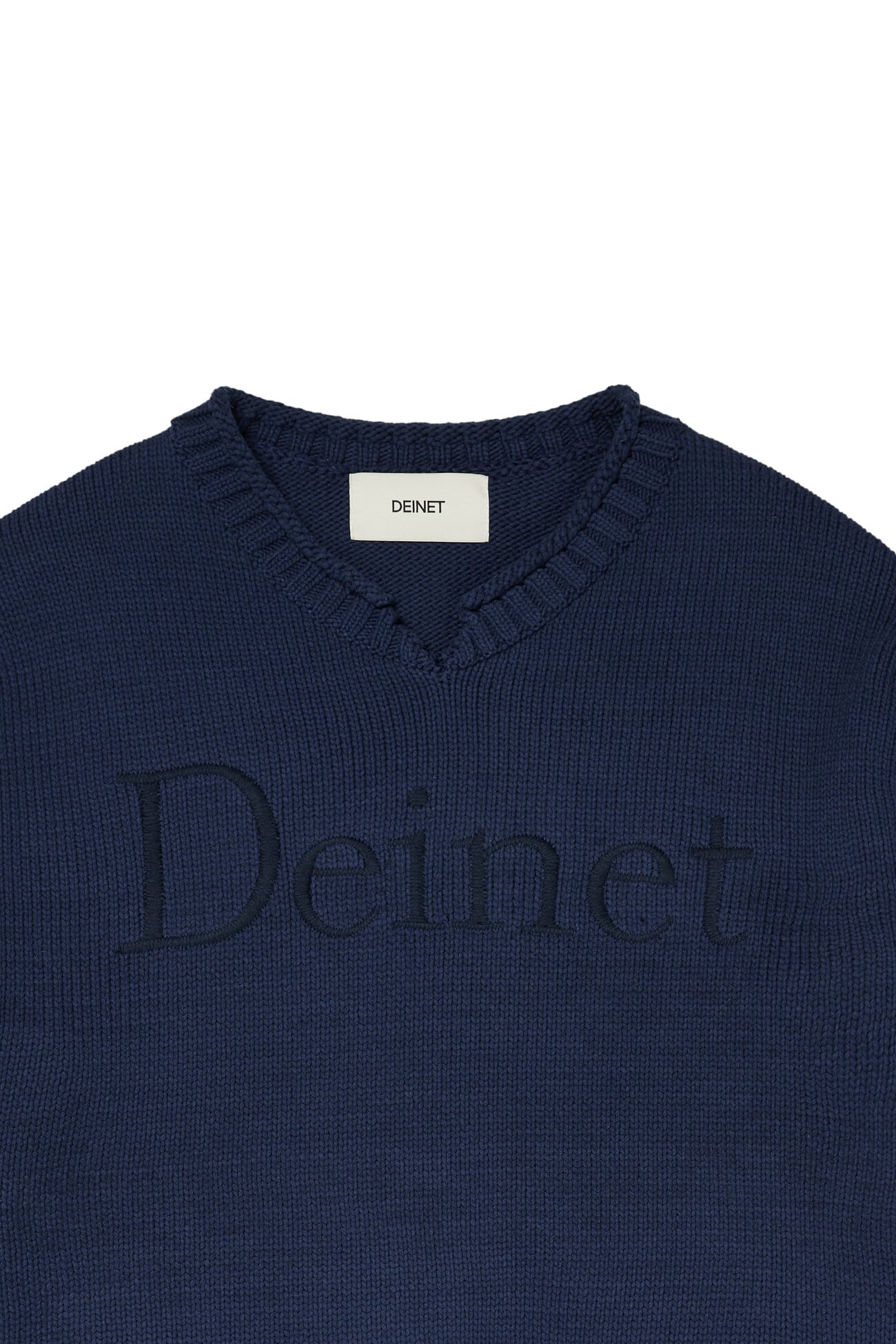 [DEINET] EMBROIDERY EDGE LOGO KNIT IN NAVY