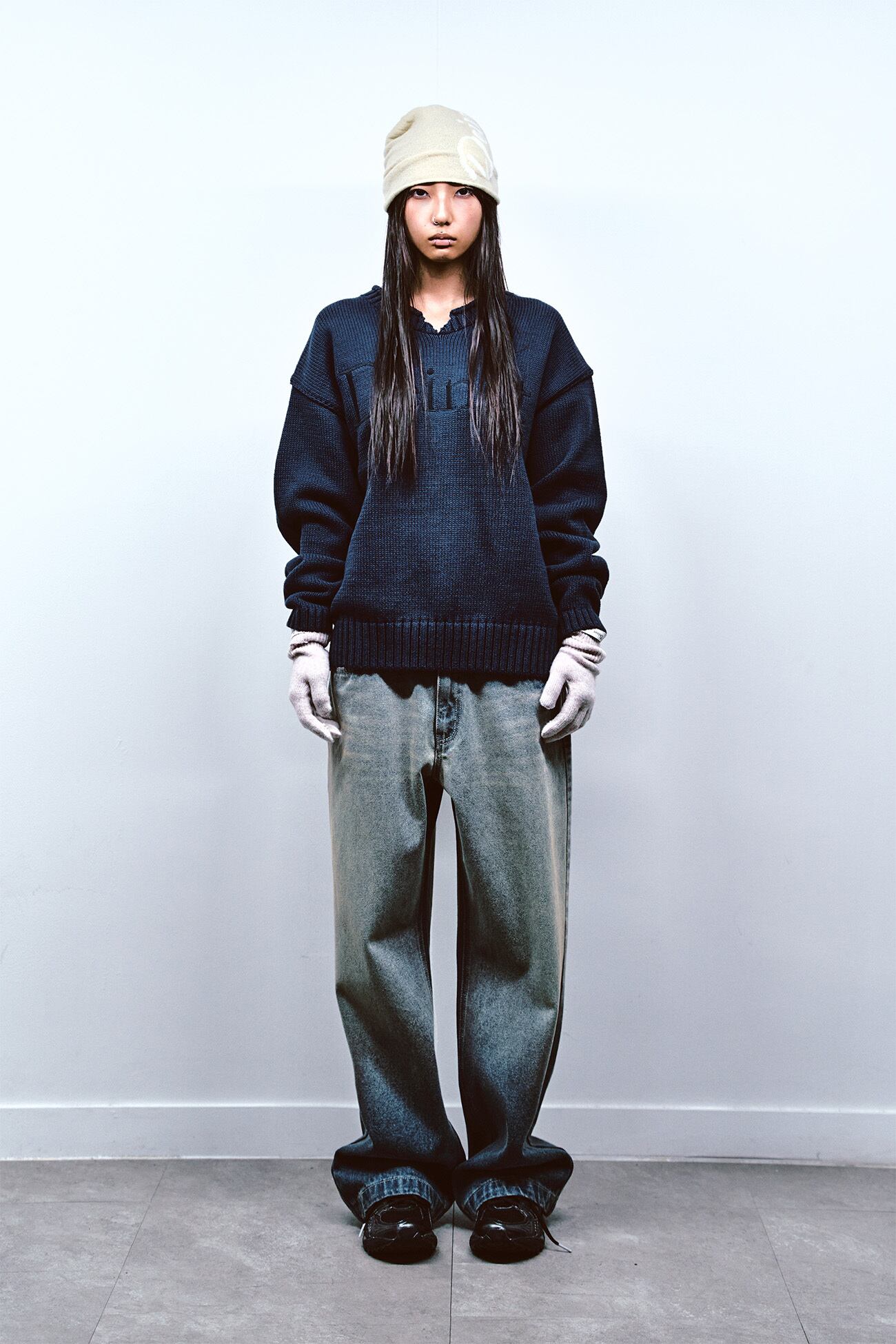 [DEINET] EMBROIDERY EDGE LOGO KNIT IN NAVY 正規品 韓国ブランド 韓国通販 韓国代行 韓国ファッション デイネット ダイニット 日本 店舗