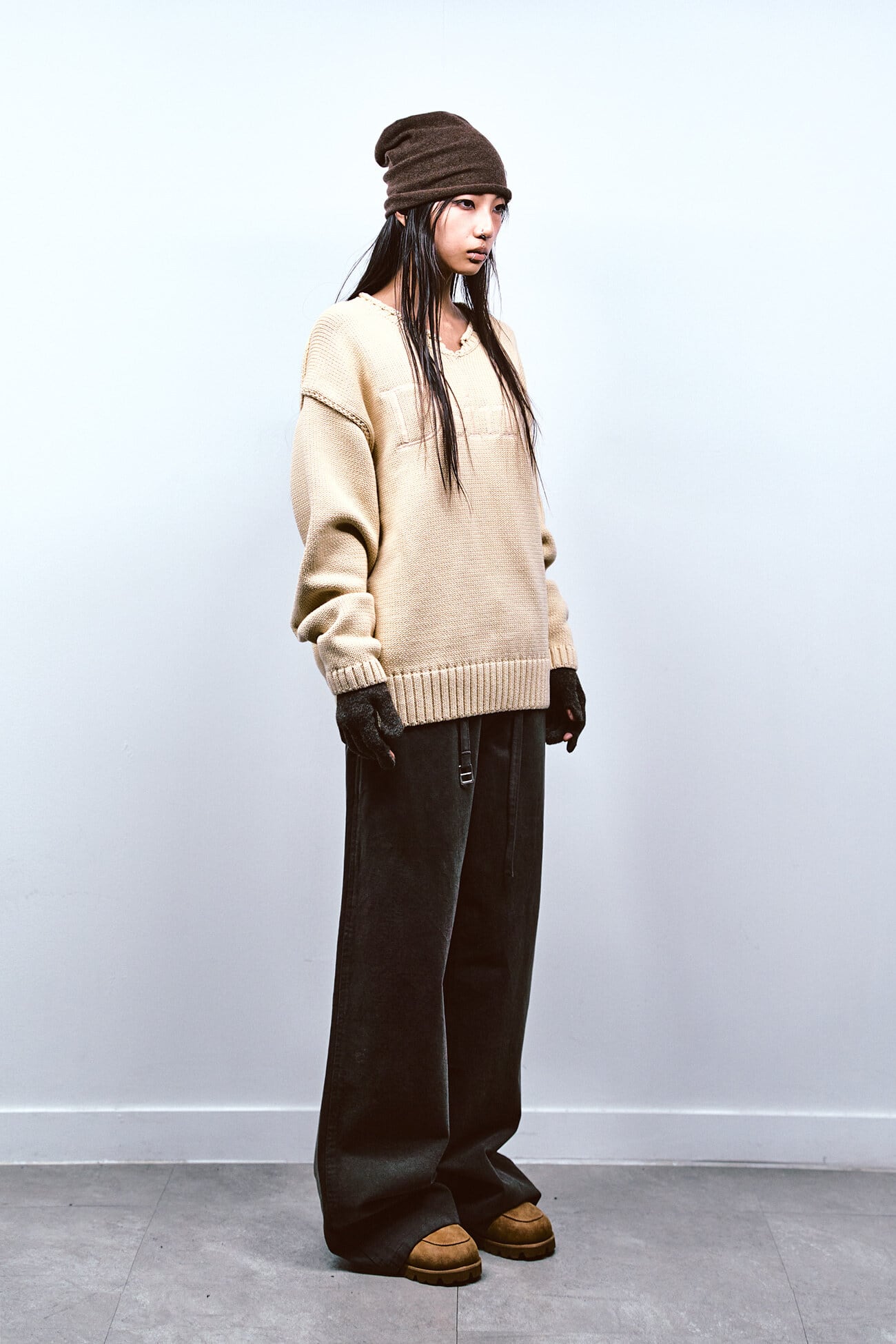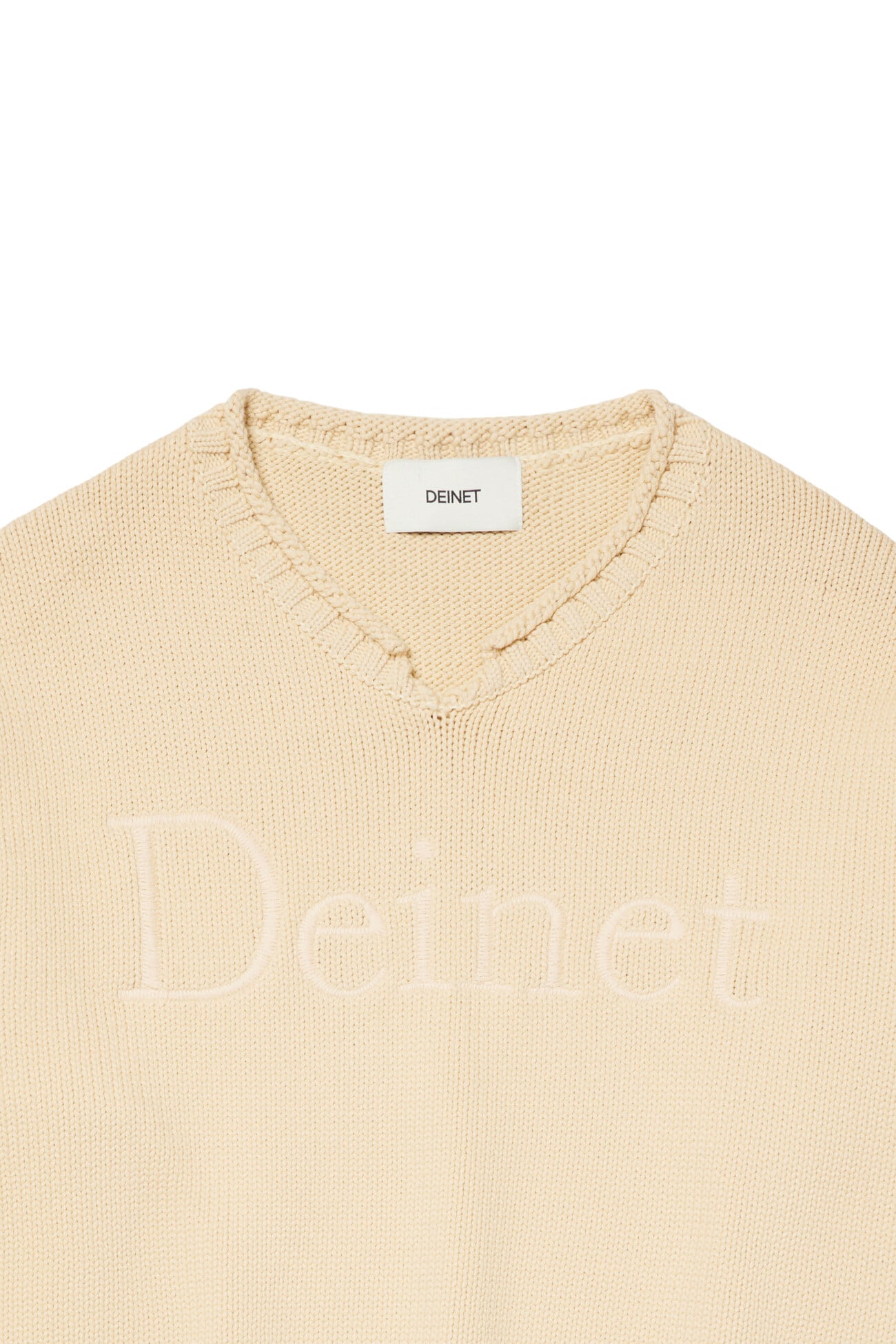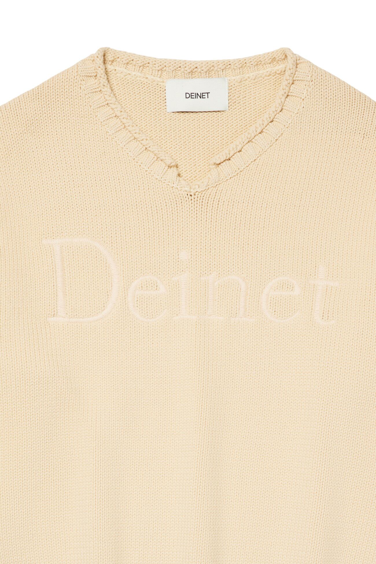 [DEINET] EMBROIDERY EDGE LOGO KNIT IN BEIGE