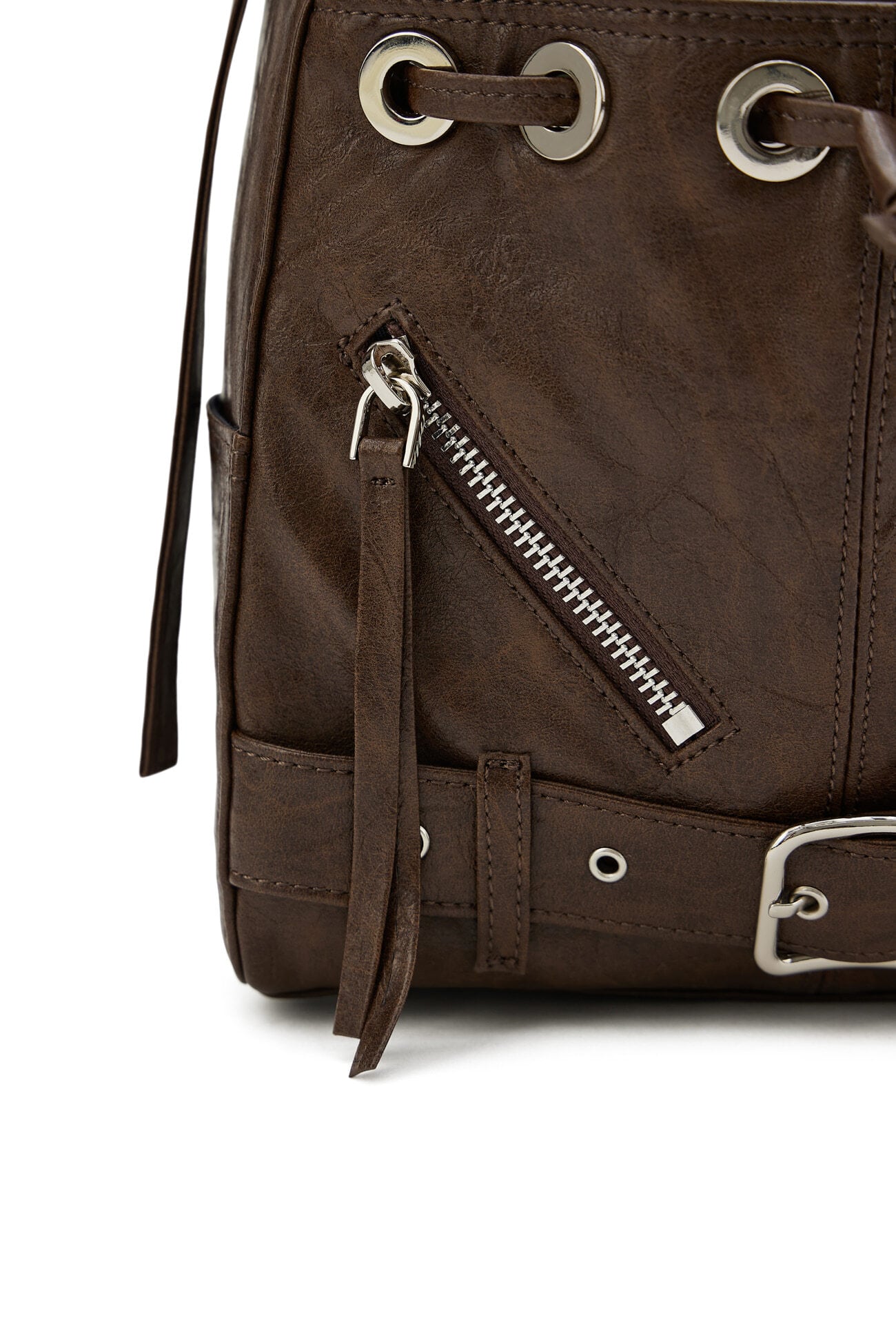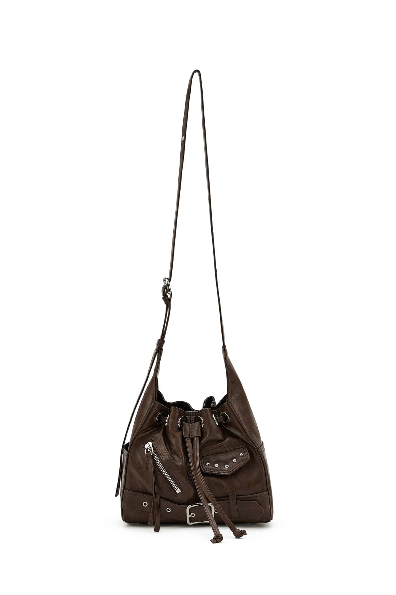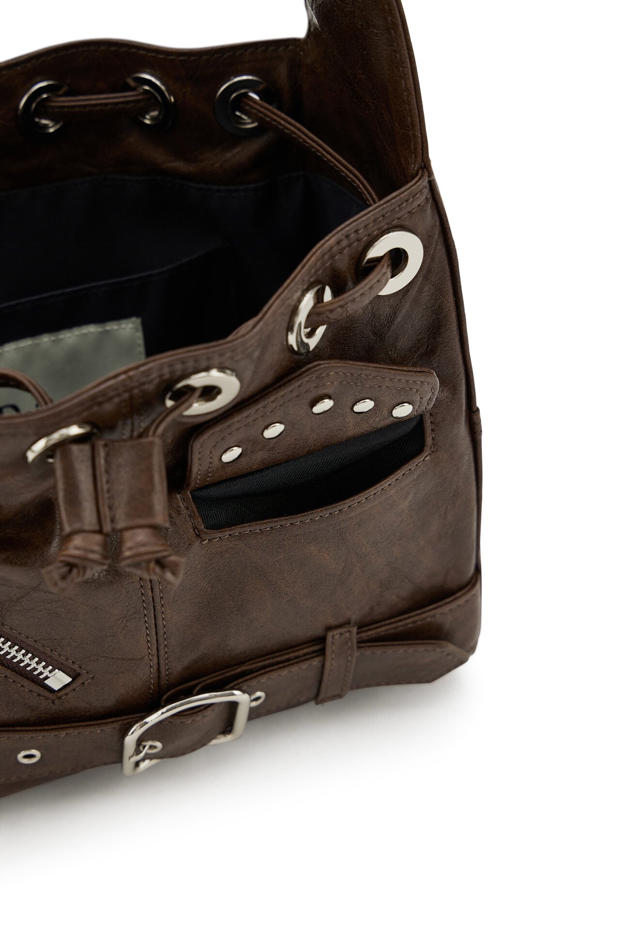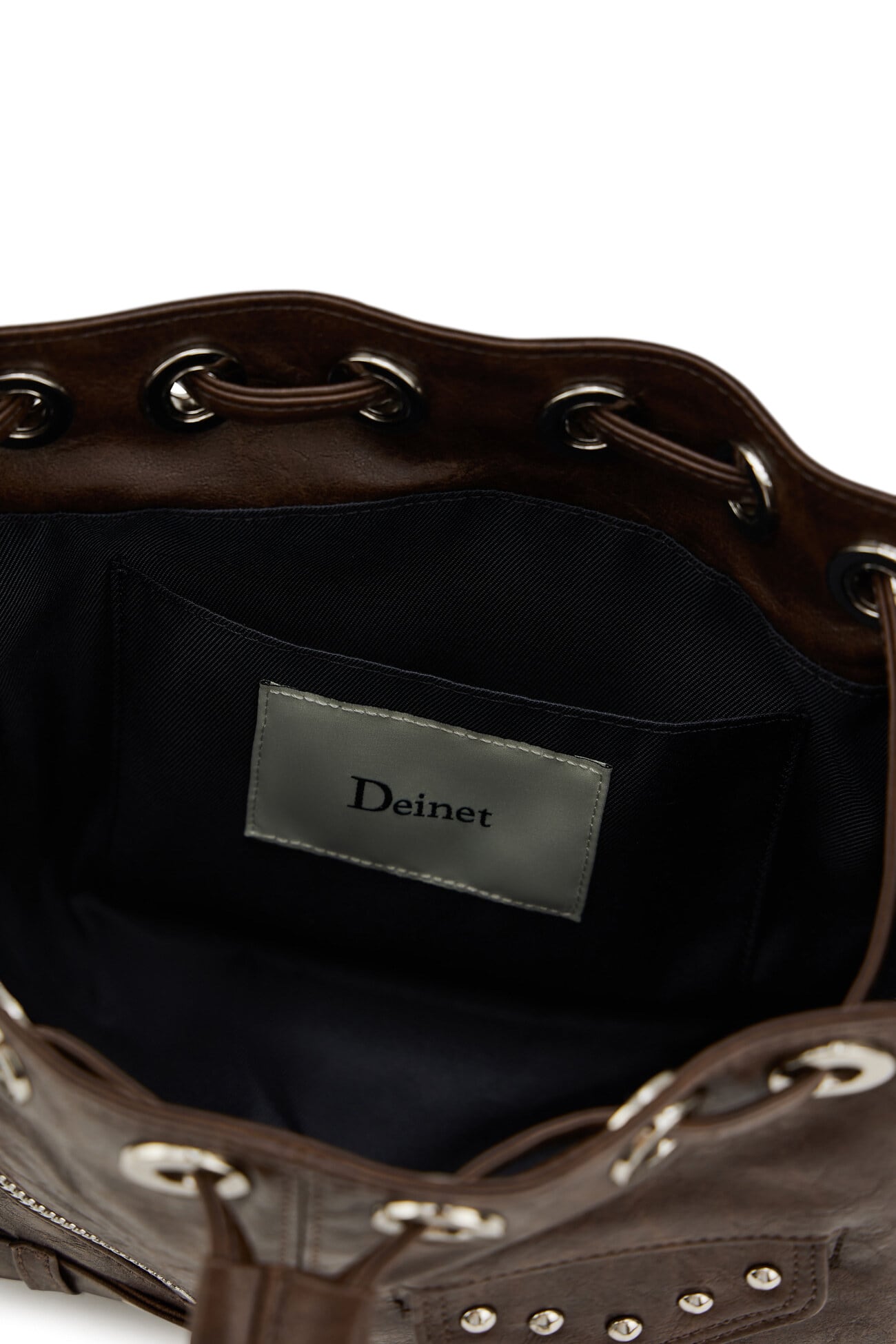 [DEINET] DEINET STUD BELTED MINI BUCKET BAG IN BROWN