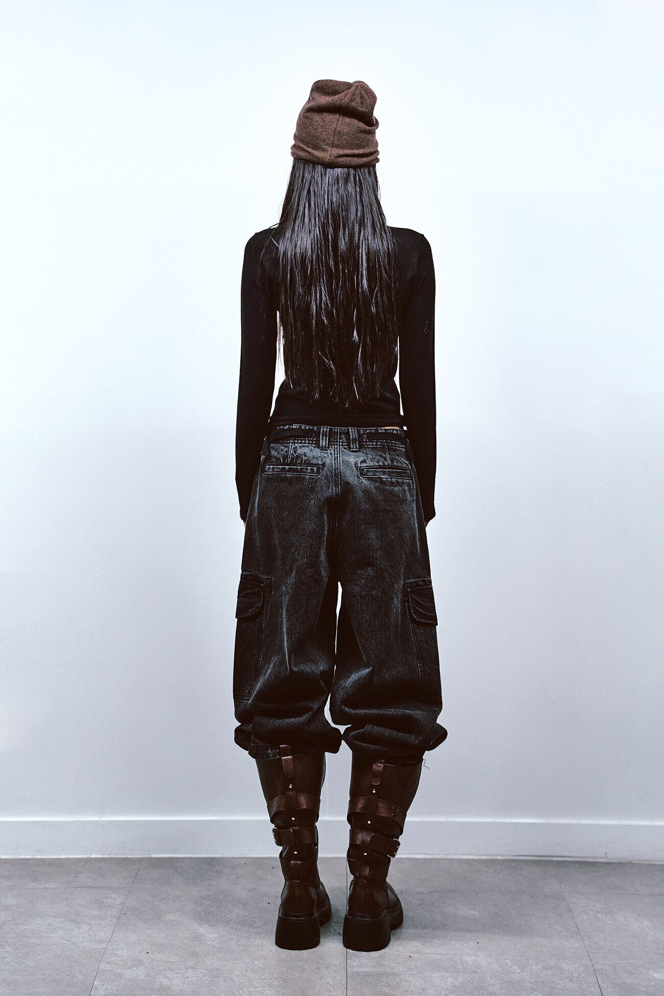 [DEINET] CHAIN DENIM M51 CARGO PANTS IN BLACK
