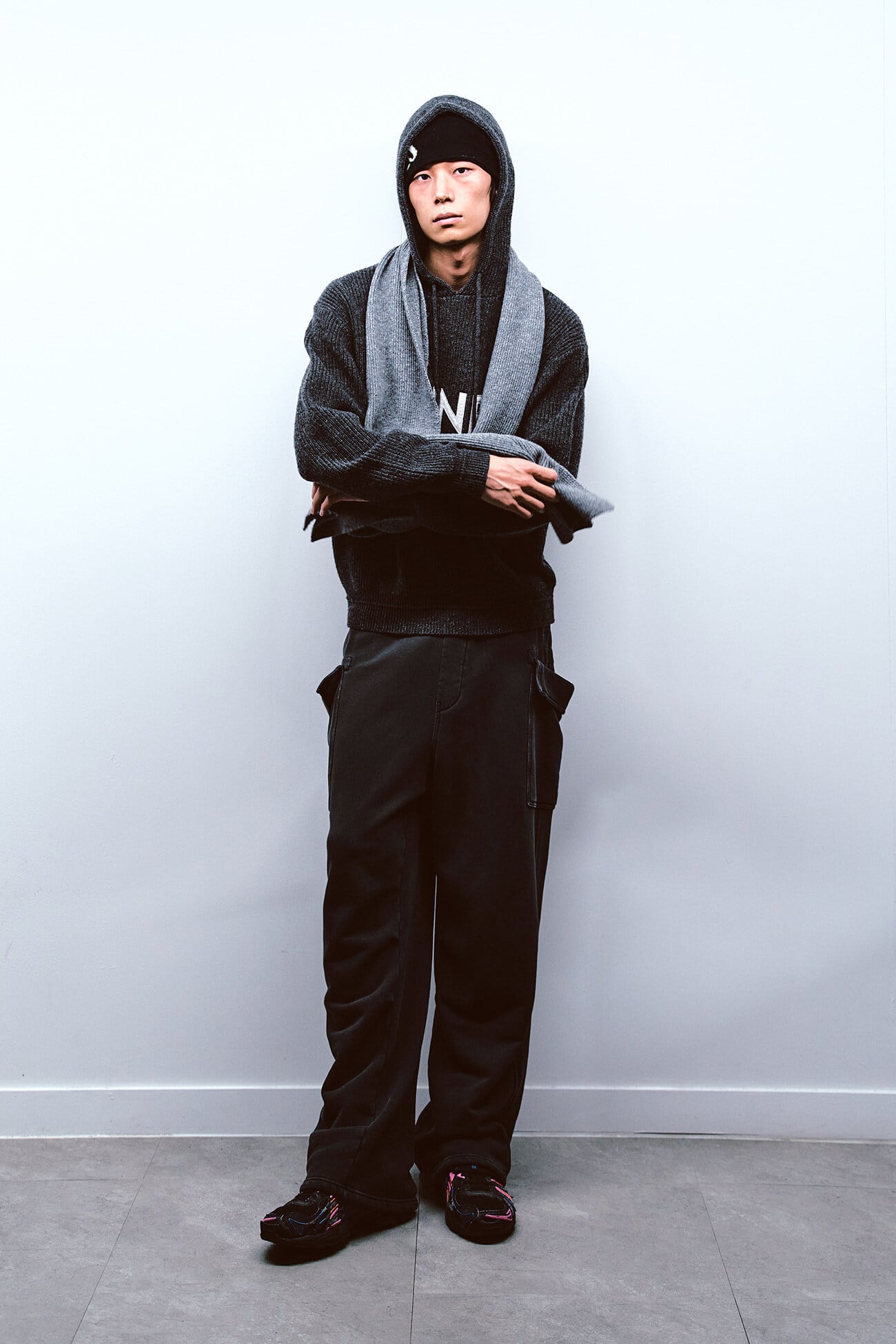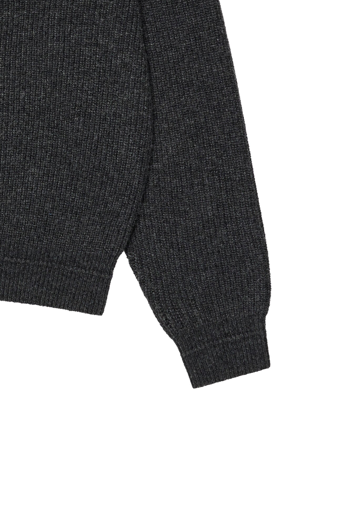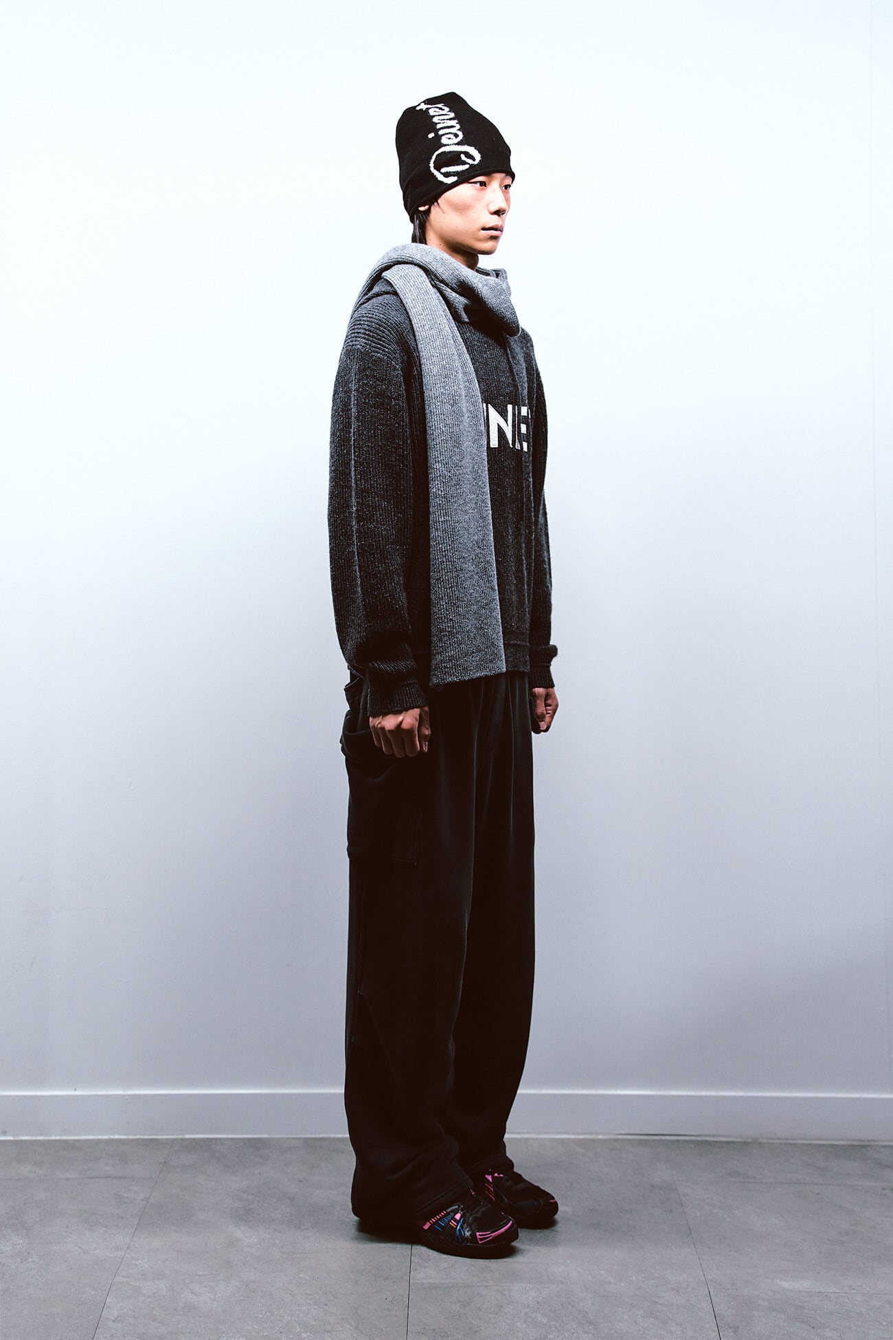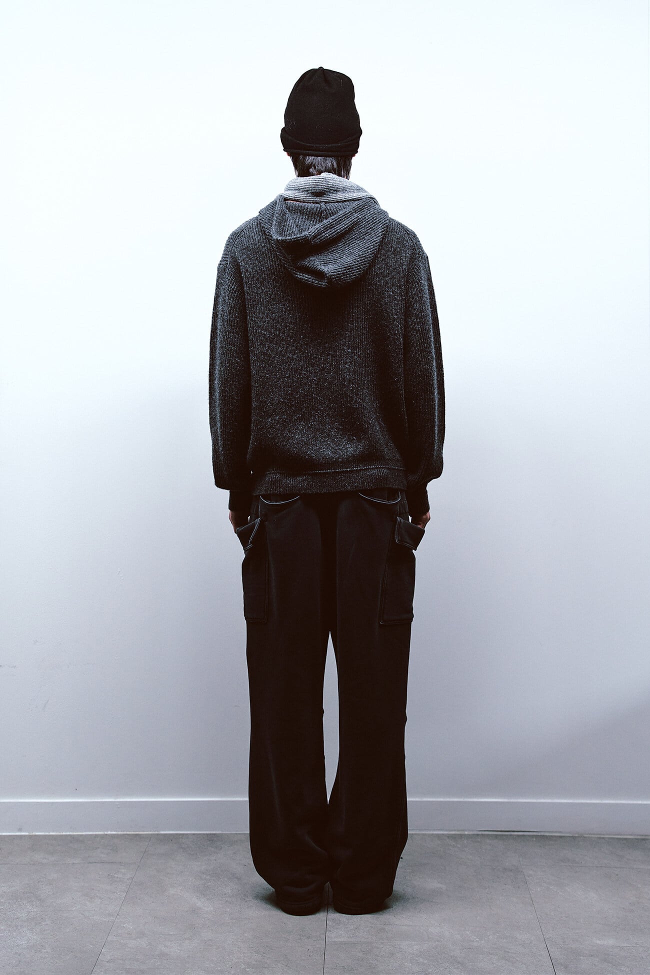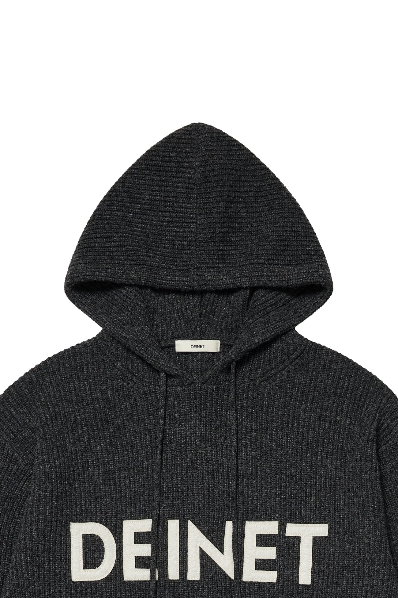 [DEINET] BASIC LOGO KNIT HOODIE IN CHARCOAL