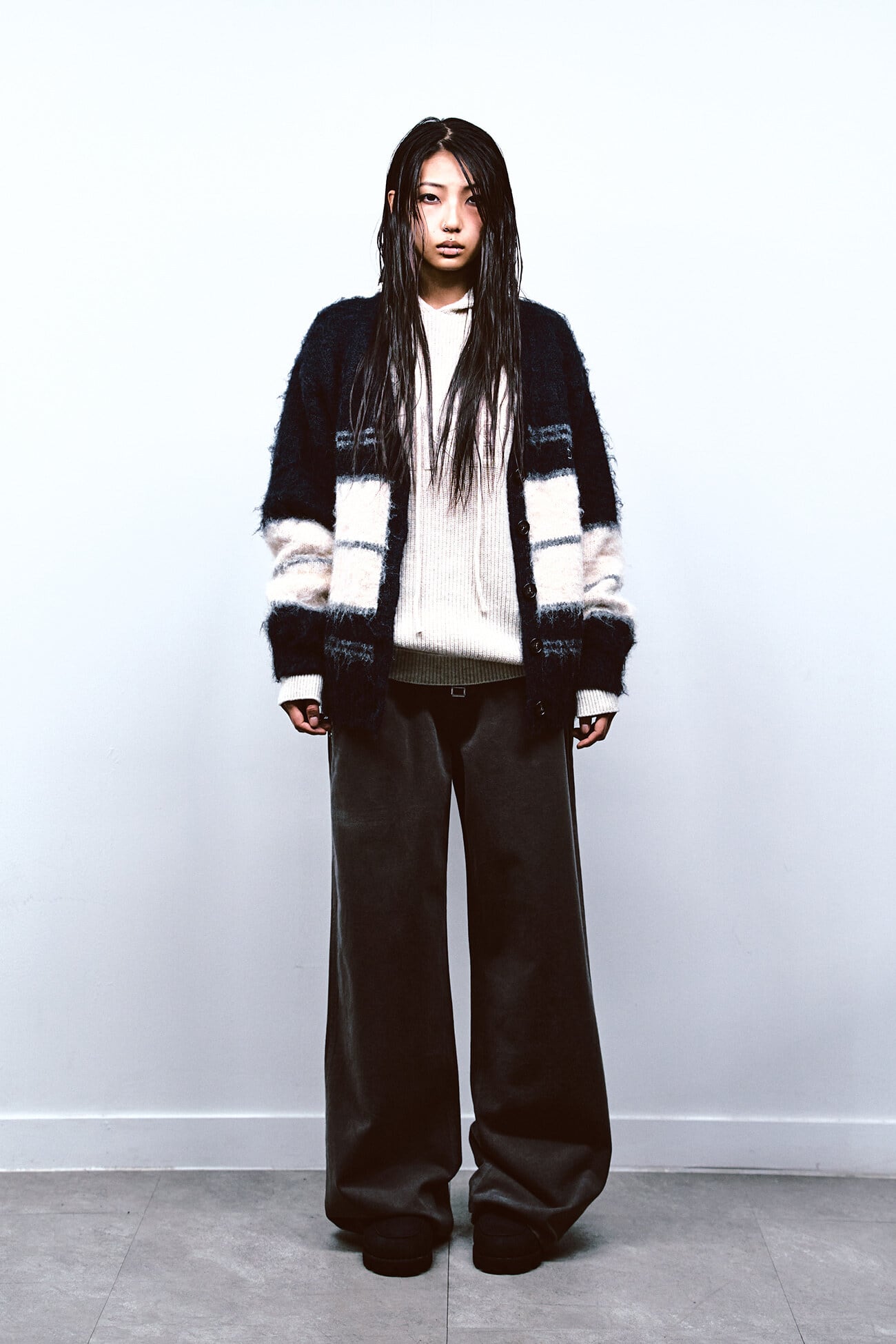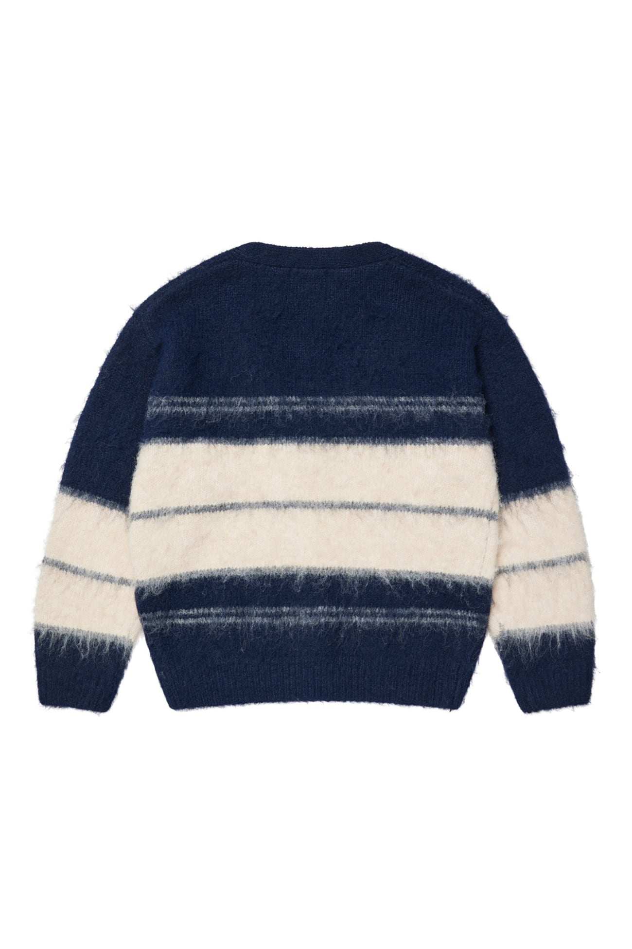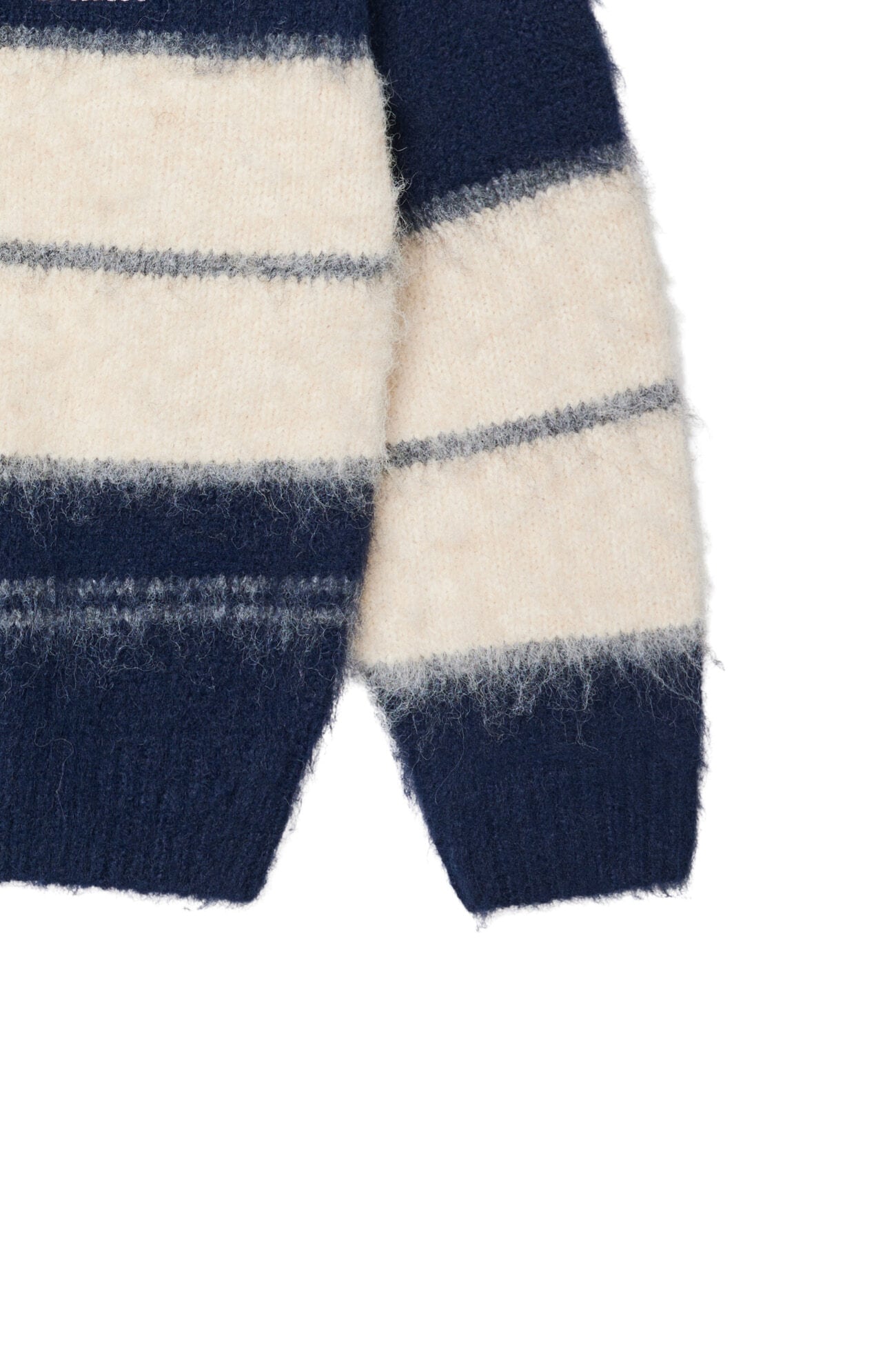 [DEINET] WOOL BLENDED STRIPE KNIT CARDIGAN IN NAVY