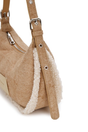 [DEINET] FAUX SUEDE FUR MINI SHOULDER BAG IN BEIGE