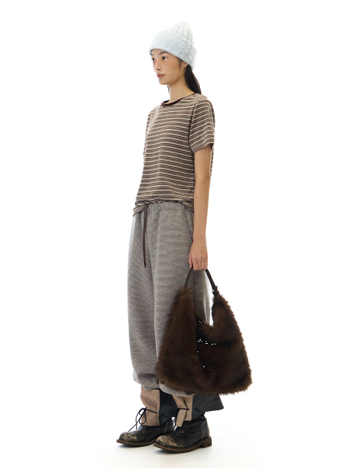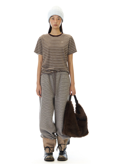 [GROVE] STRIPE VELVET H/S T-SHIRT