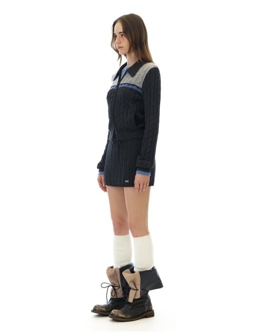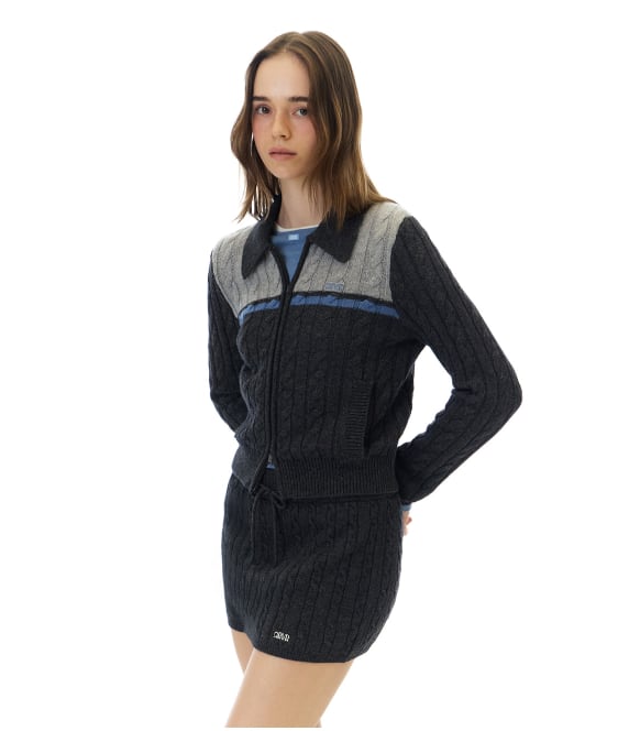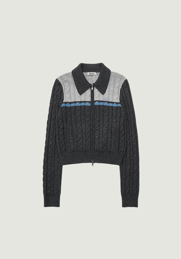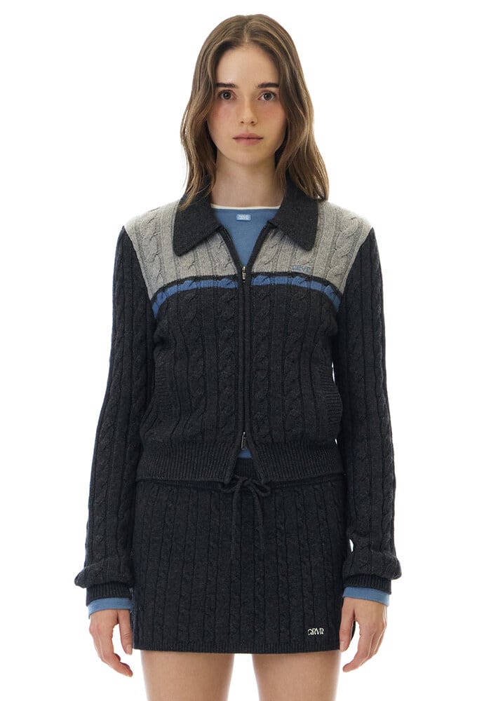 [GROVE] ZARIA CABLE KNIT ZIP-UP
