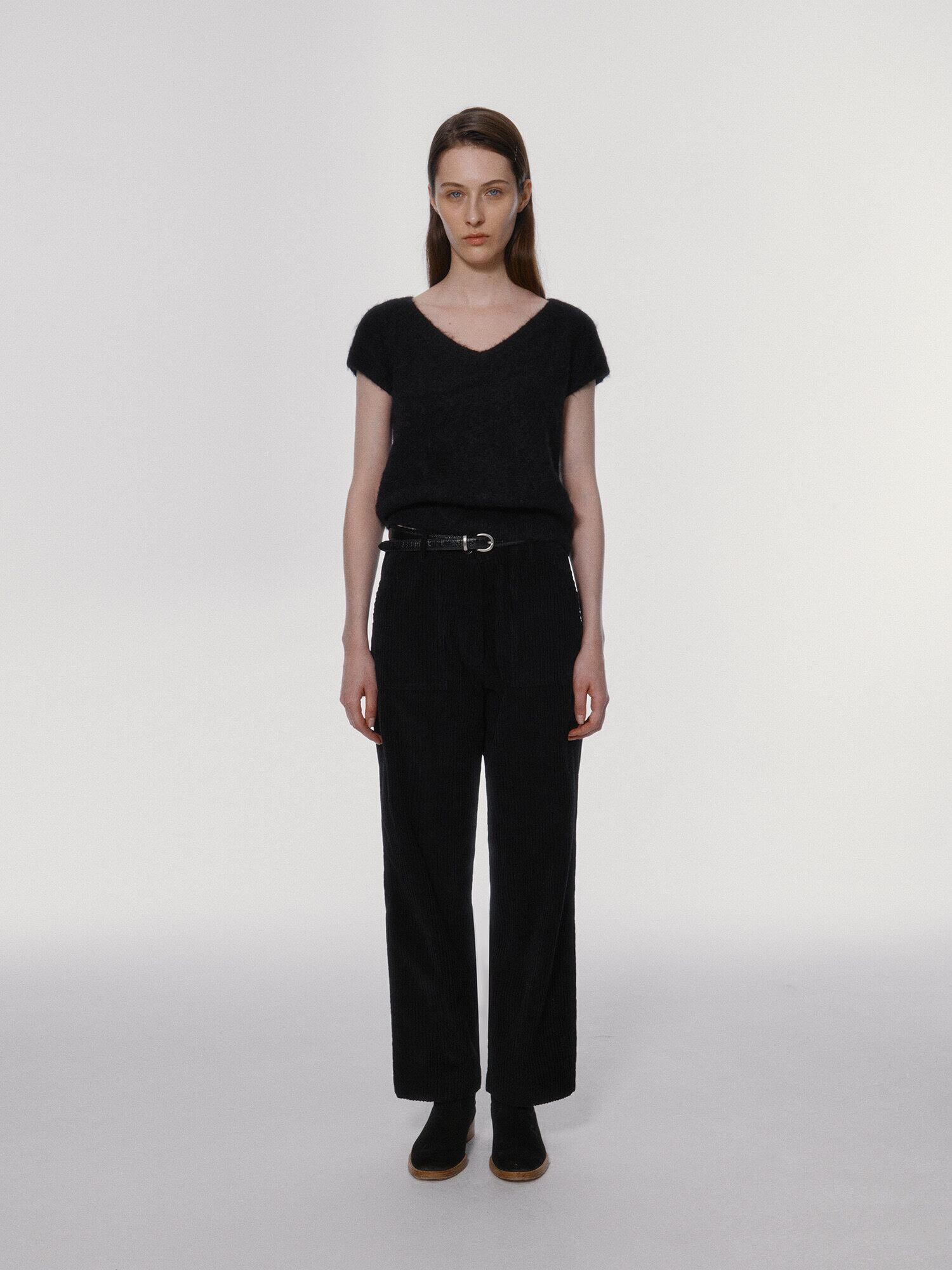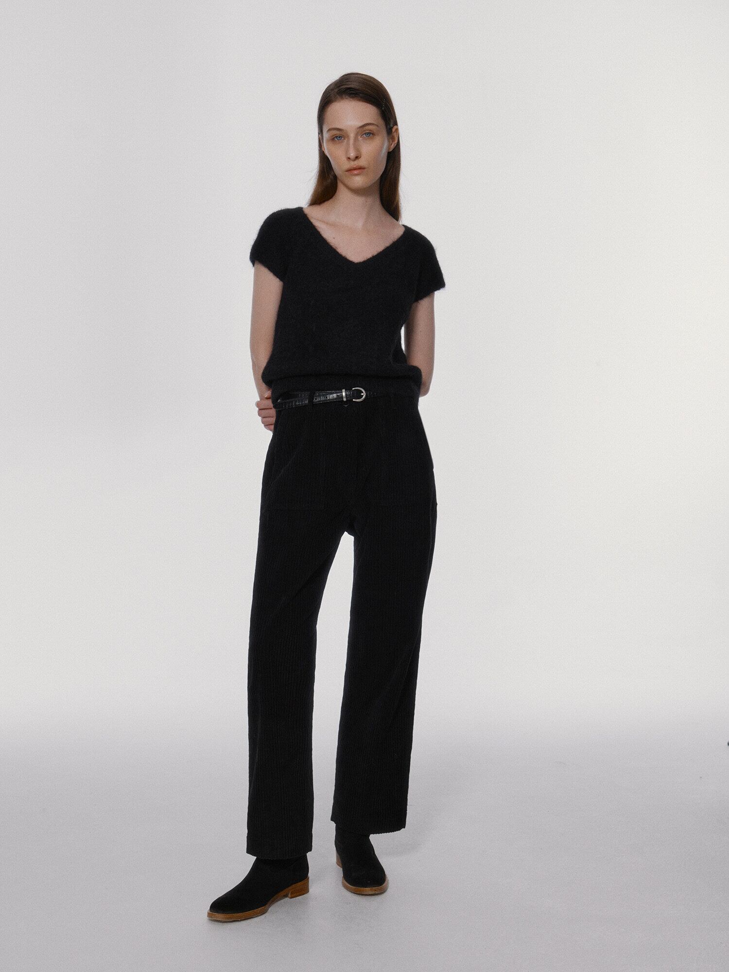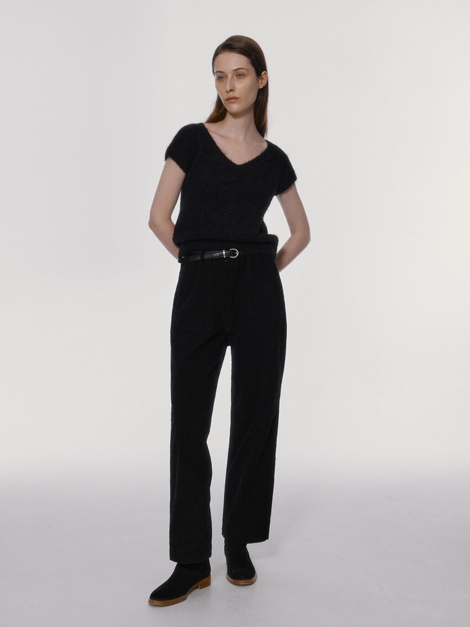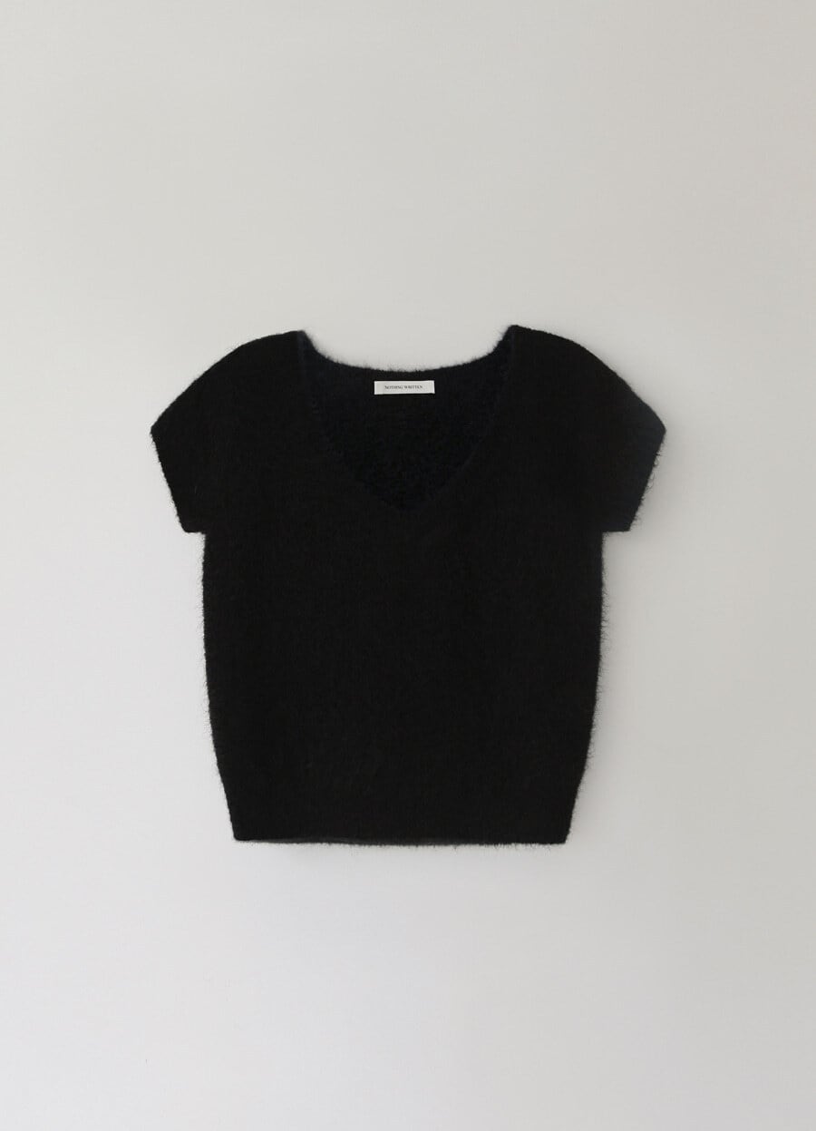 [NOTHING WRITTEN] Sienna v-neck short sleeve knit (Black)