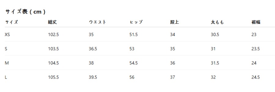 下記のサイズ表をご参照ください。