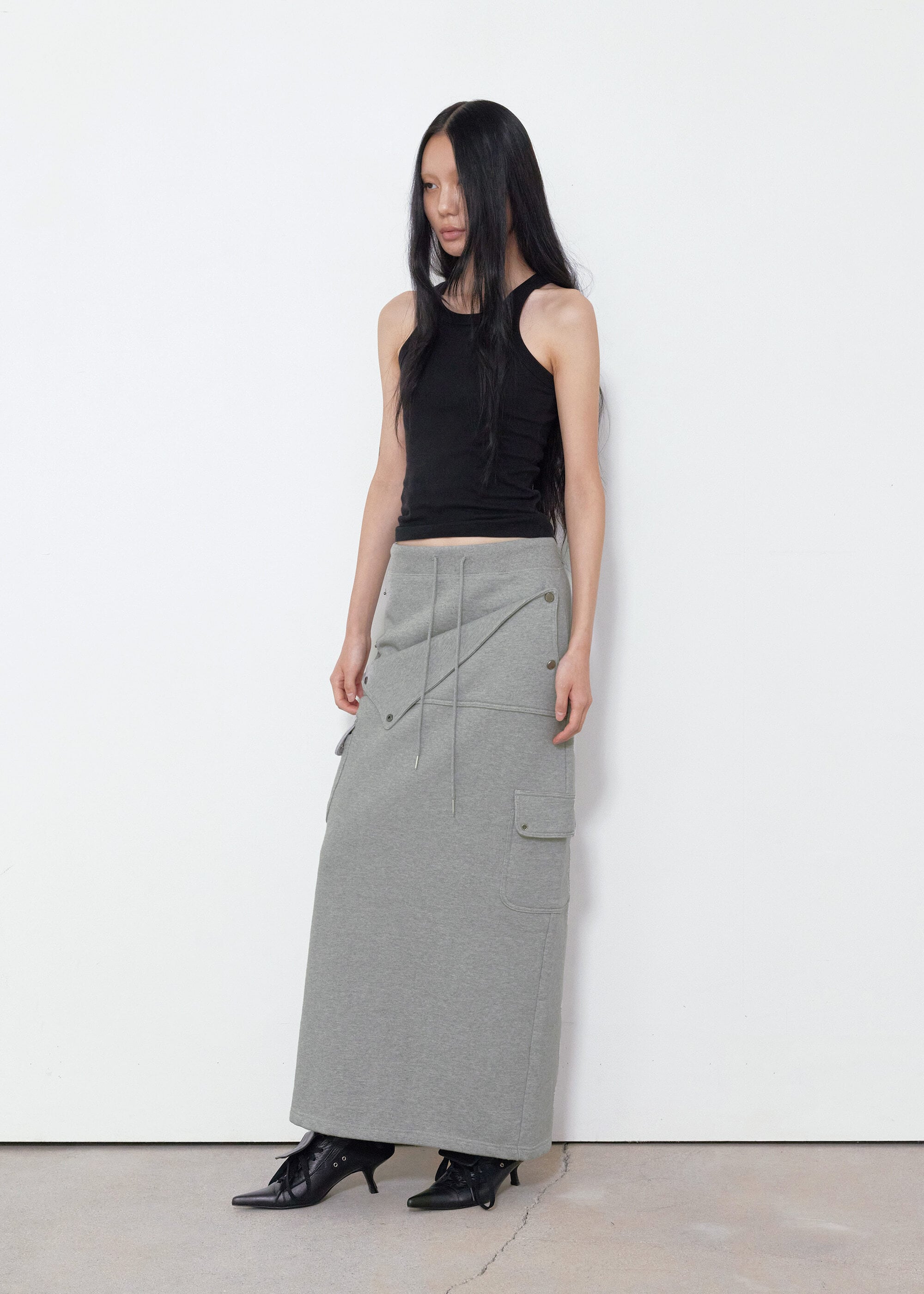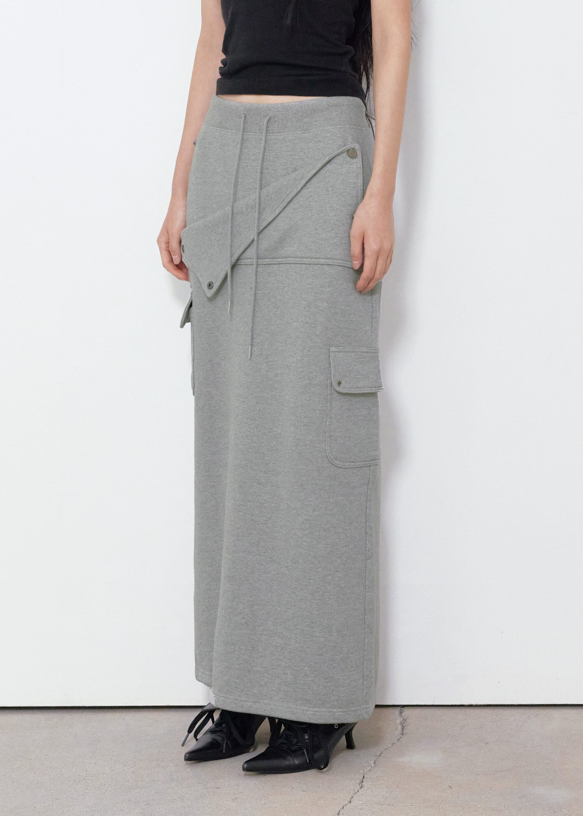[BOHEMIAN SEOUL] OPEN POCKET MAXI SKIRT, MELANGE GRAY