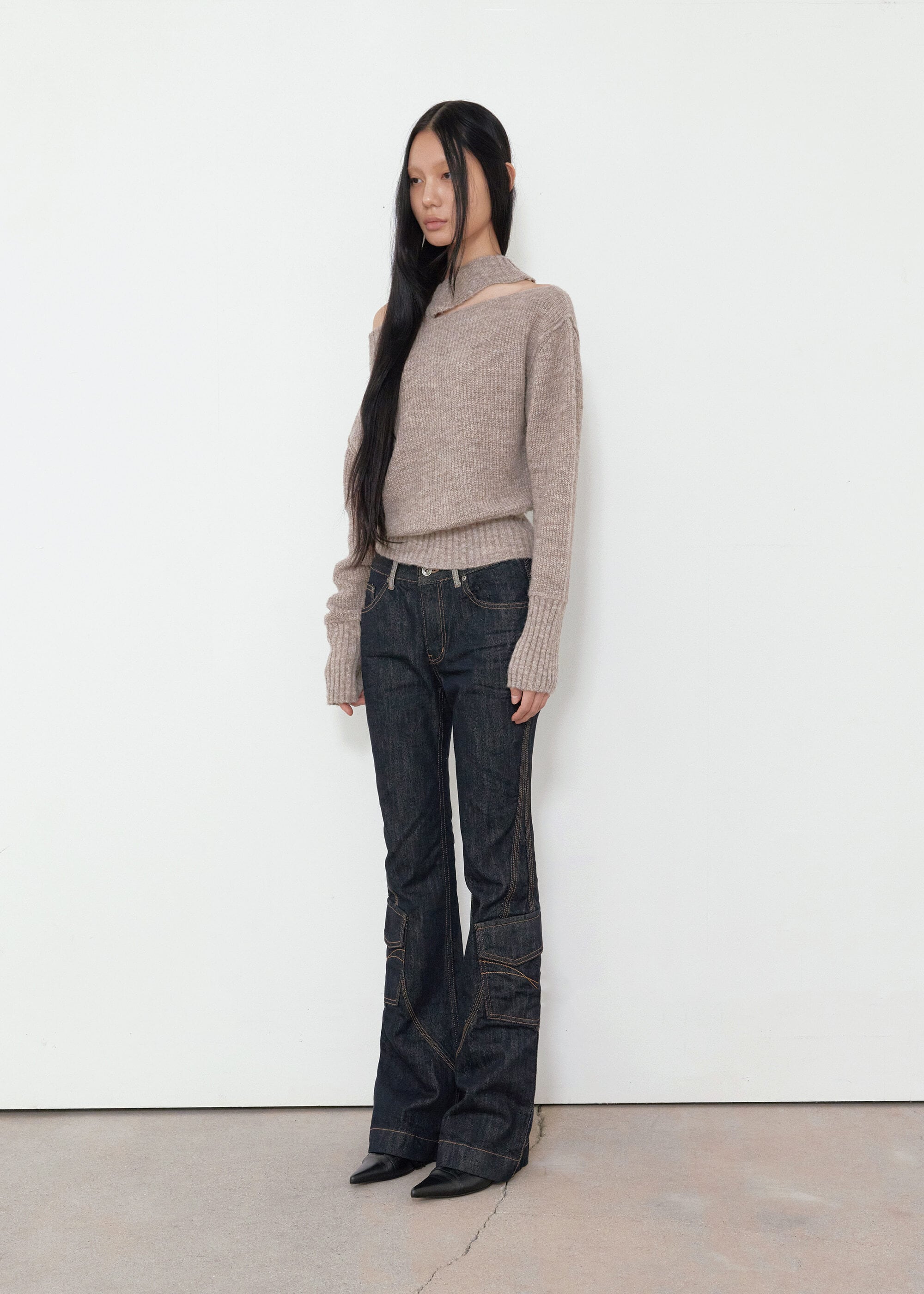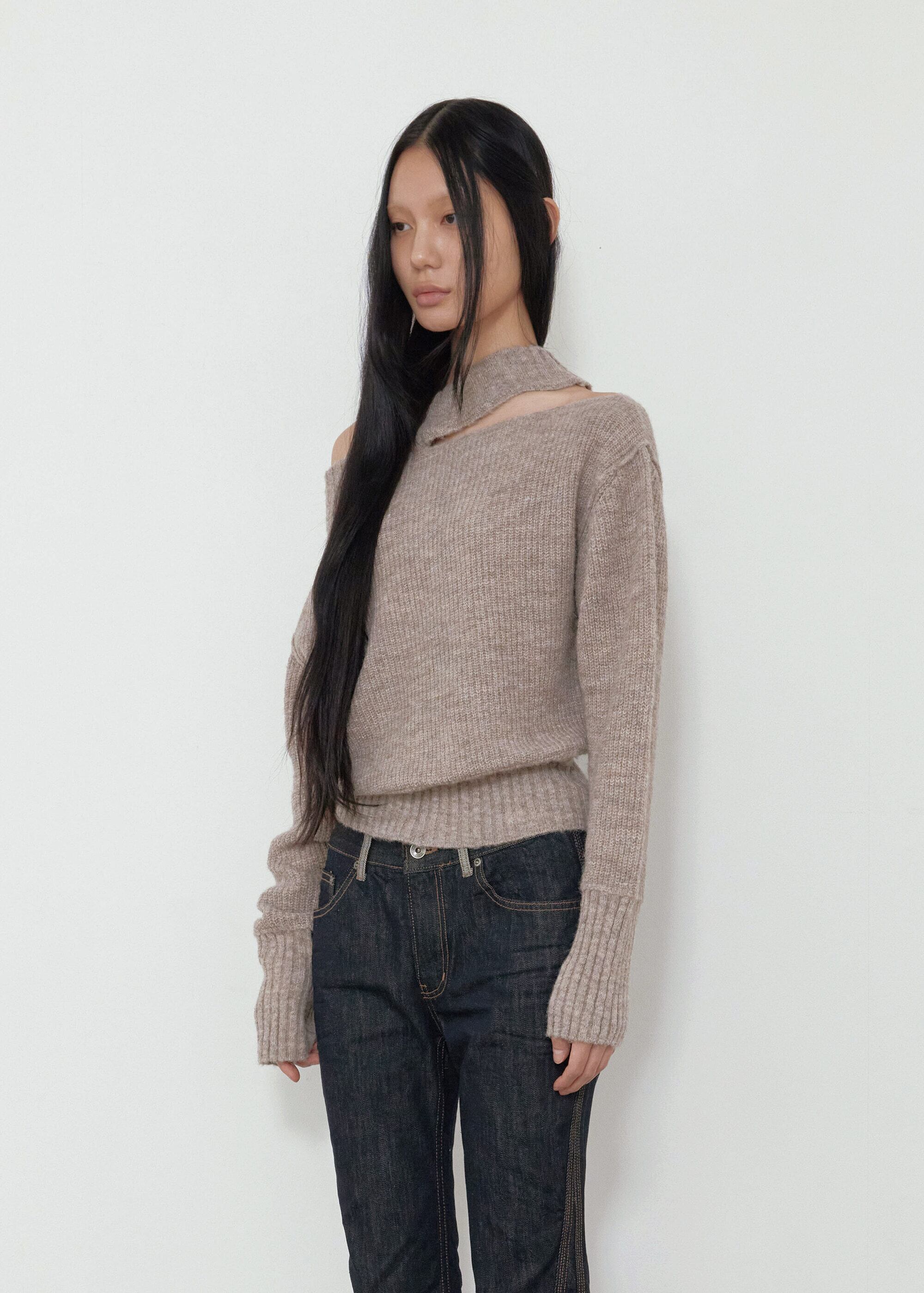 [BOHEMIAN SEOUL] NECK CUTOUT SLIMFIT KNIT, BEIGE