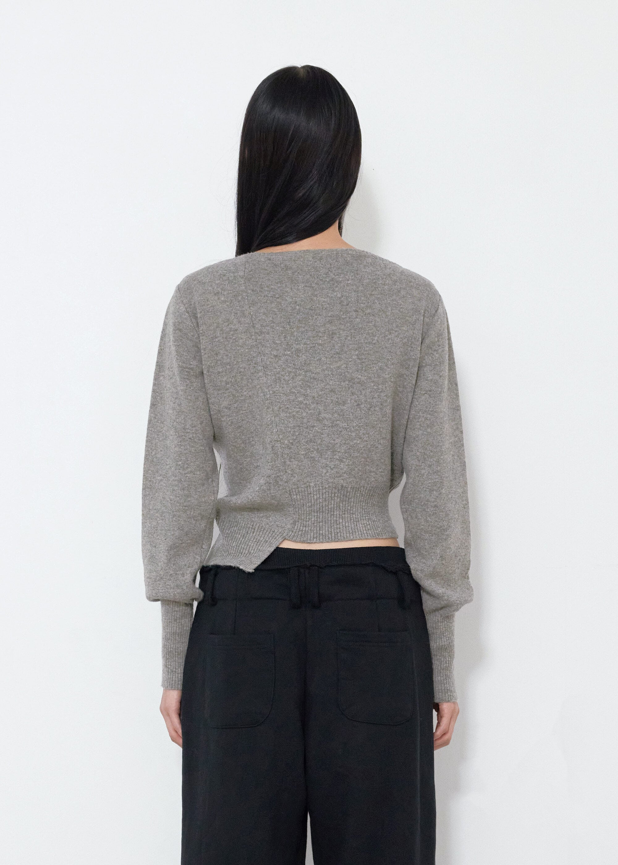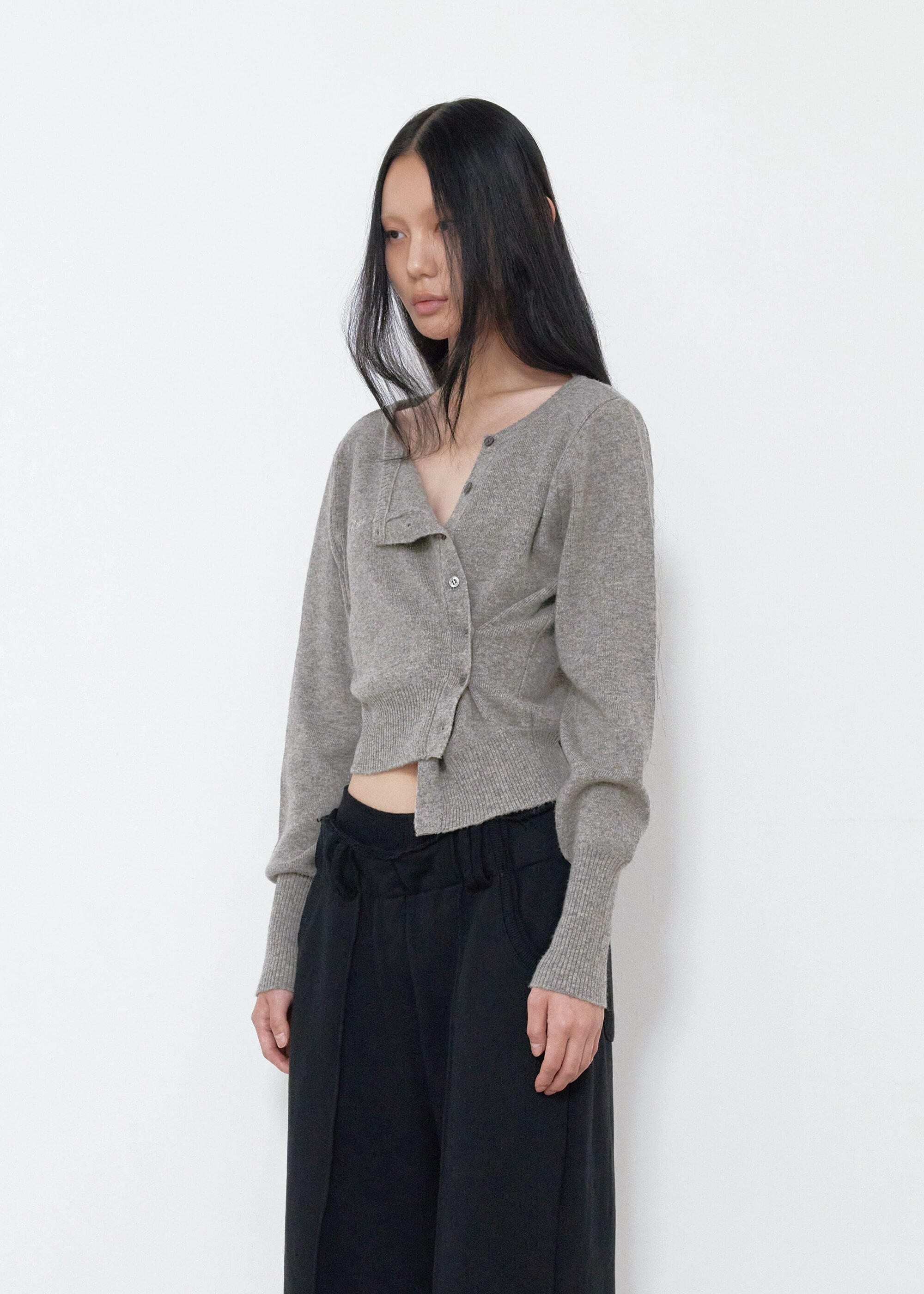 [BOHEMIAN SEOUL] UNBALANCED KNIT CARDIGAN, KHAKI