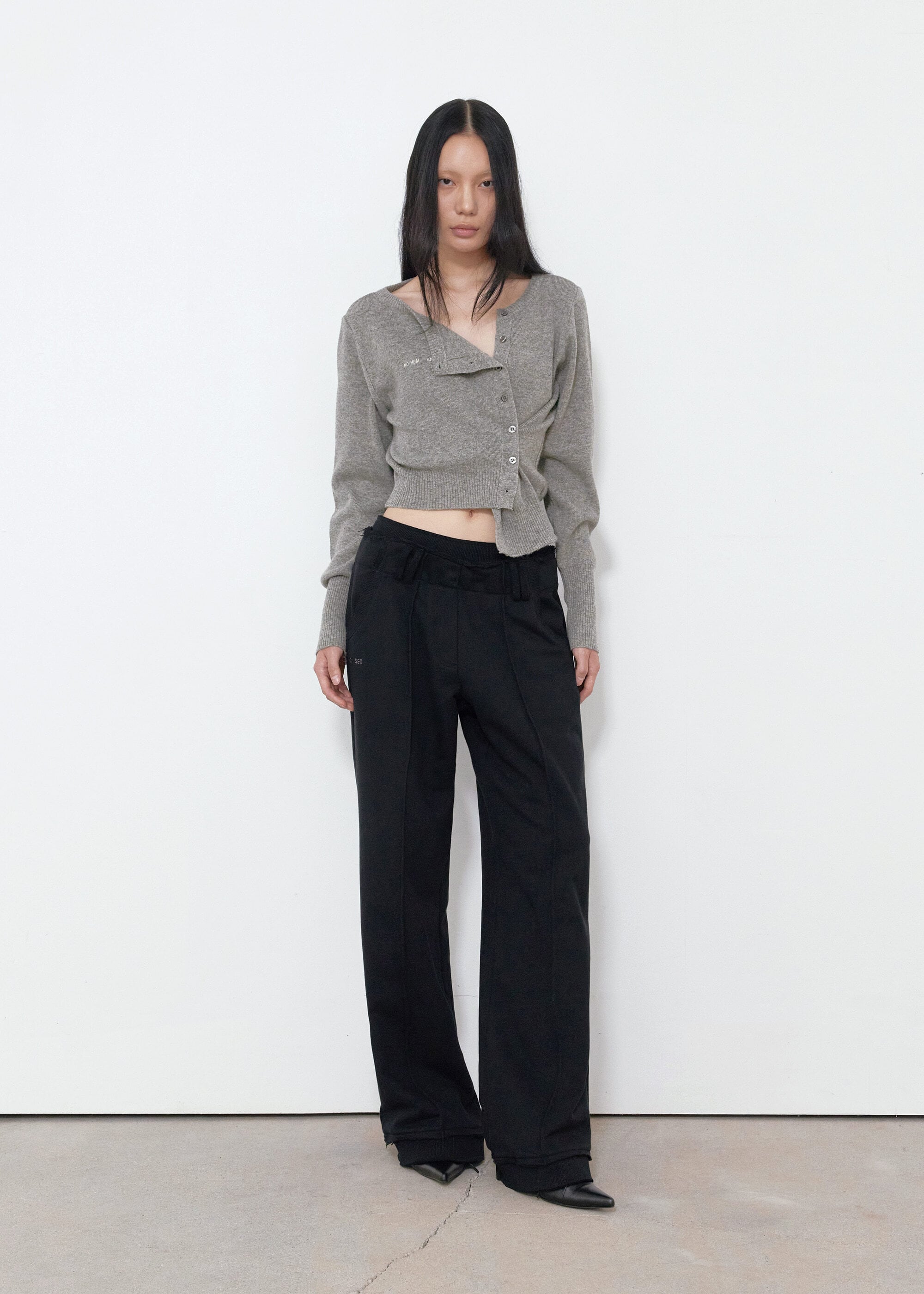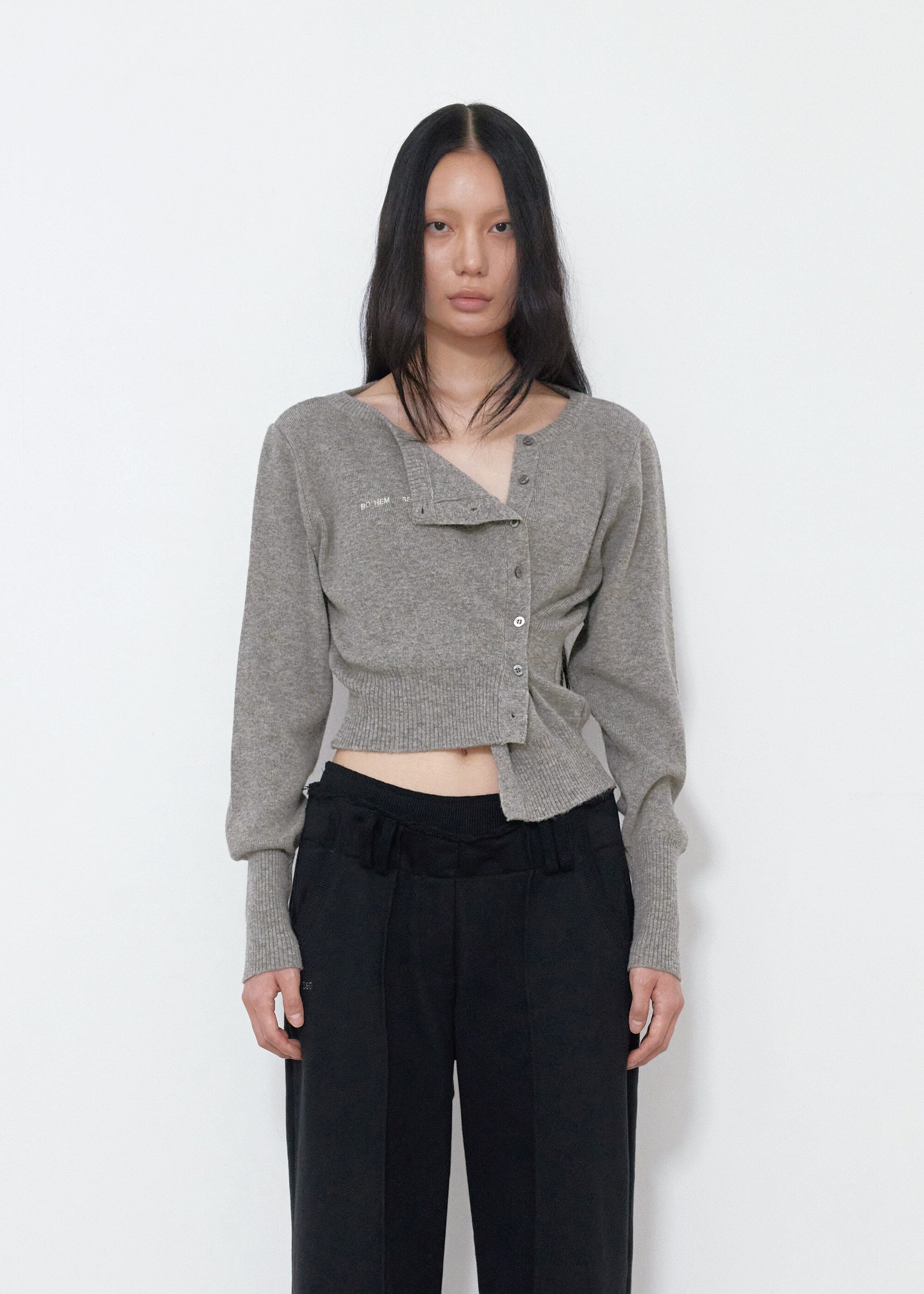 [BOHEMIAN SEOUL] UNBALANCED KNIT CARDIGAN, KHAKI 正規品 韓国ブランド 韓国通販 韓国代行 韓国ファッション bohemseo ボヘミアンソウル