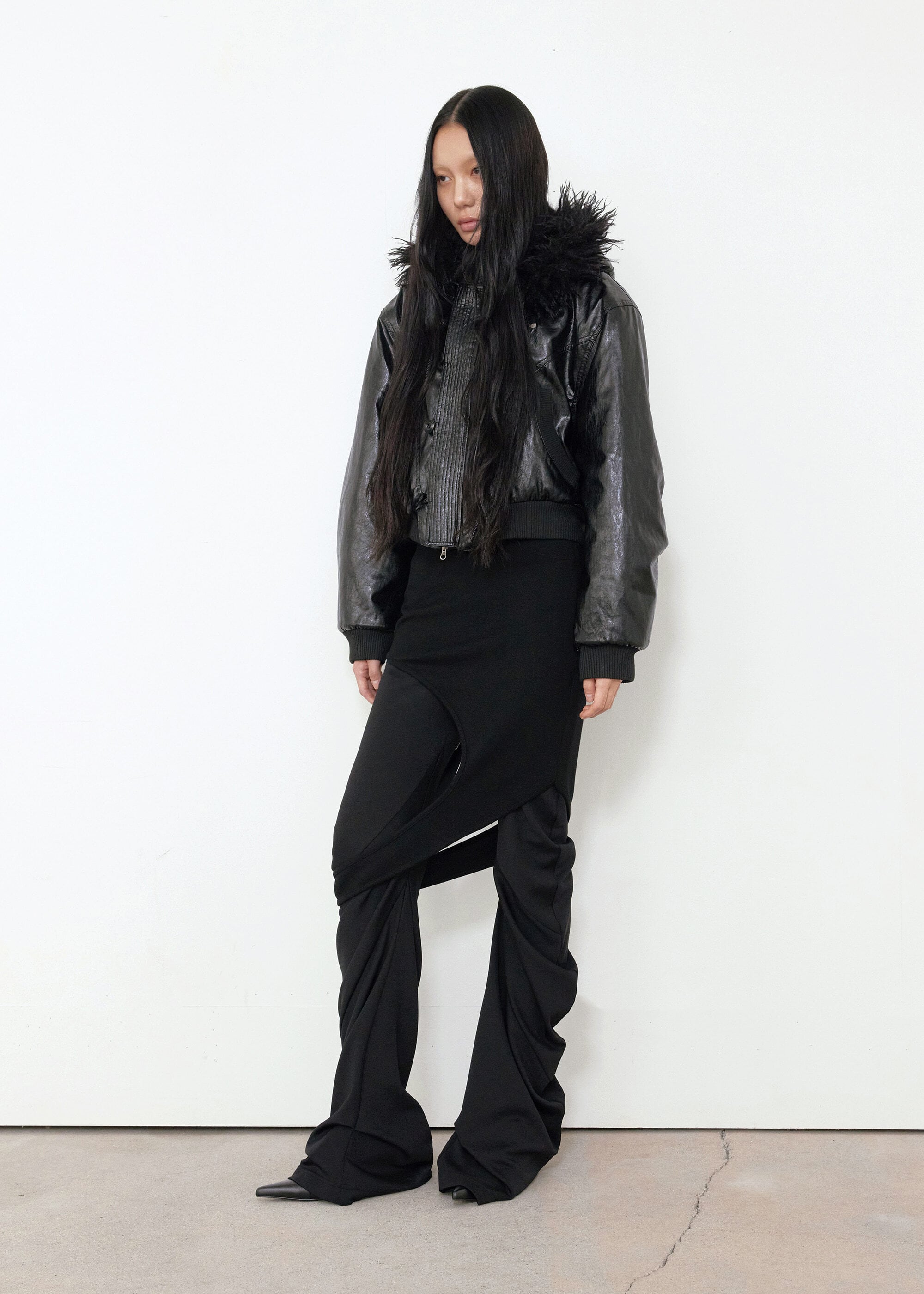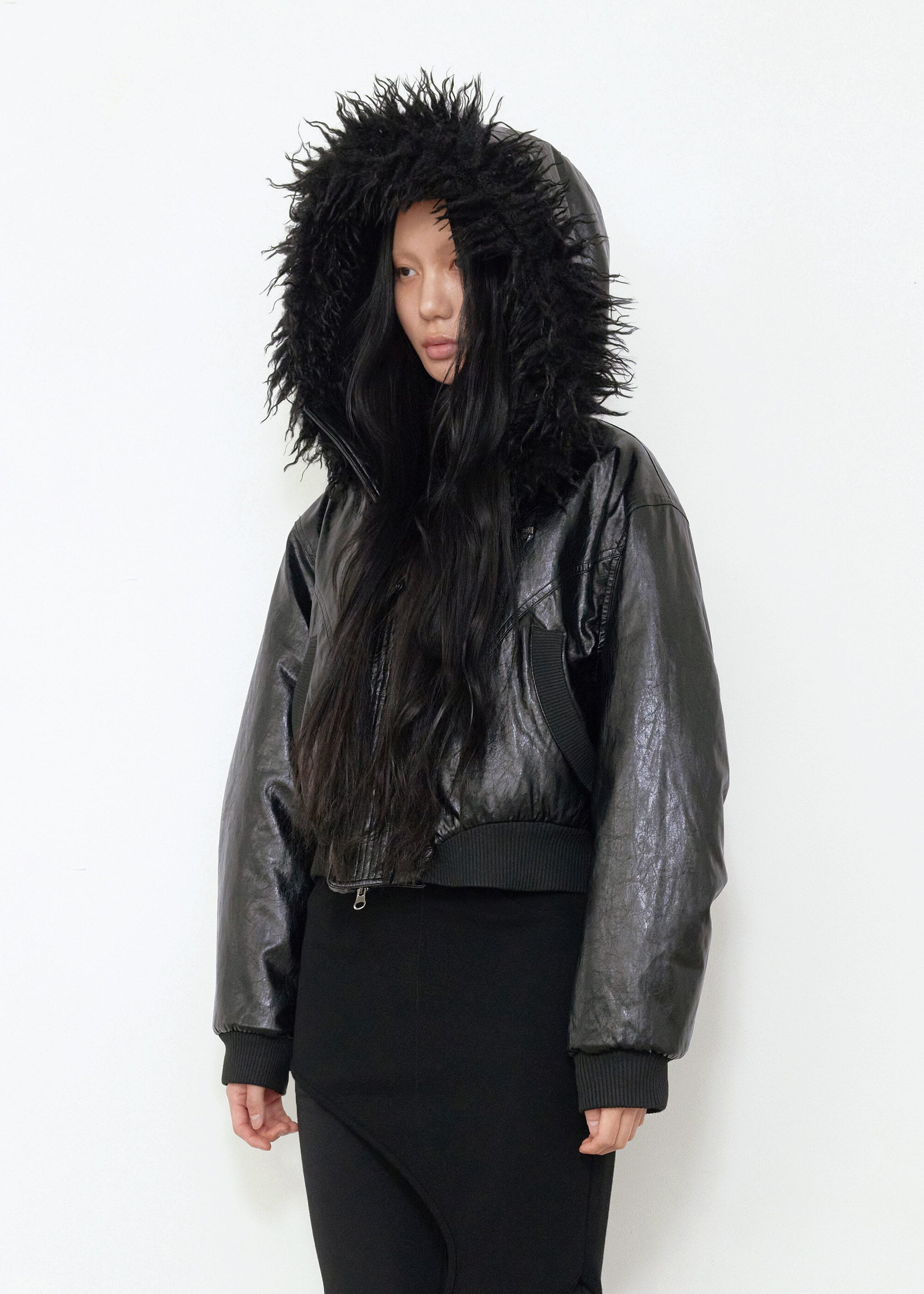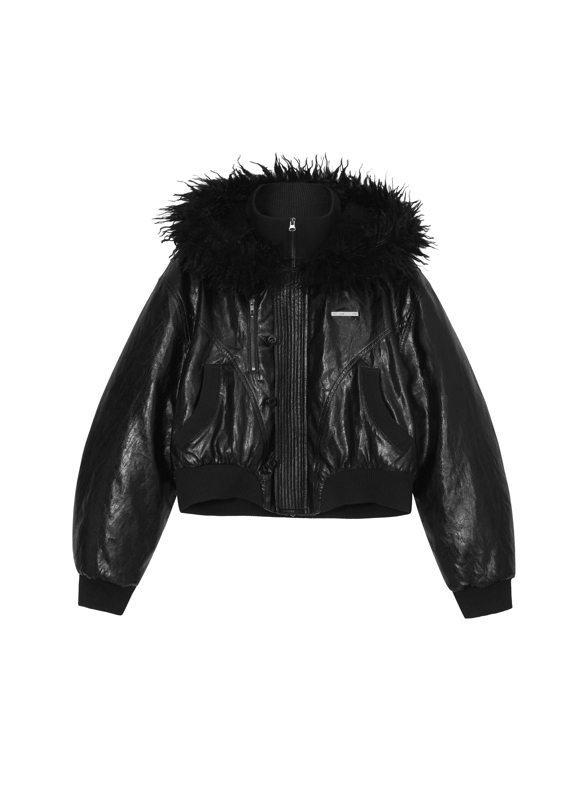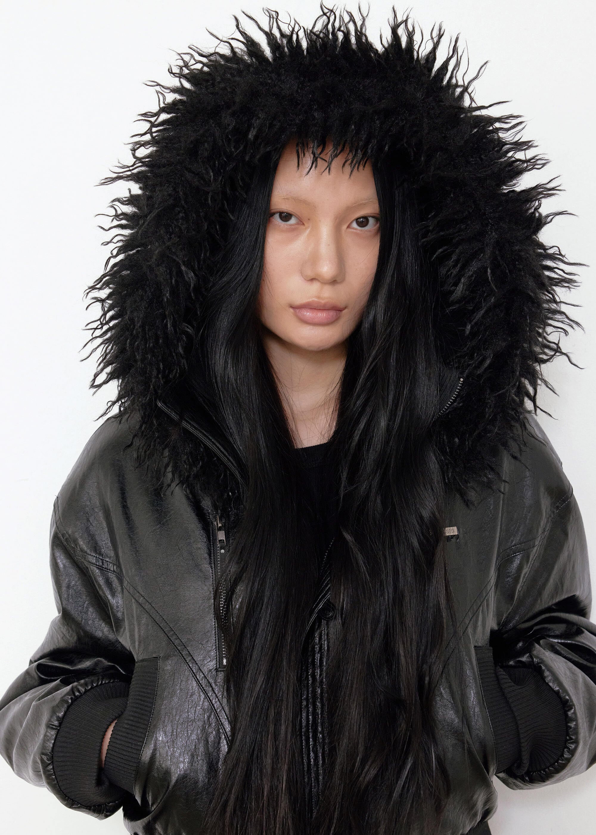 [BOHEMIAN SEOUL] LEATHER FUR HOOD JUMPER, BLACK