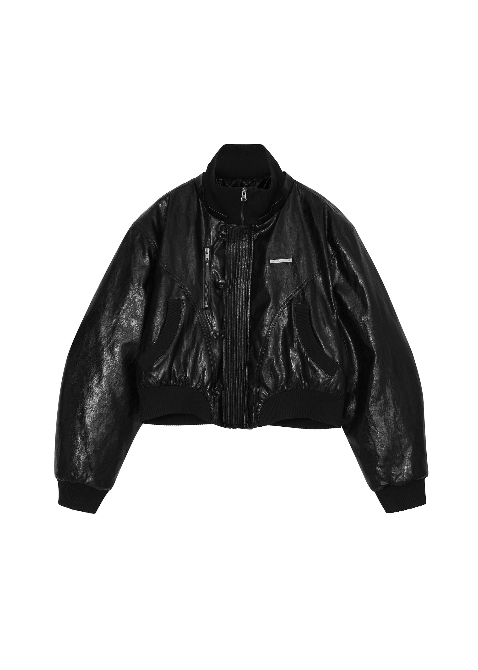 [BOHEMIAN SEOUL] LEATHER FUR HOOD JUMPER, BLACK 正規品 韓国ブランド 韓国通販 韓国代行 韓国ファッション bohemseo ボヘミアンソウル
