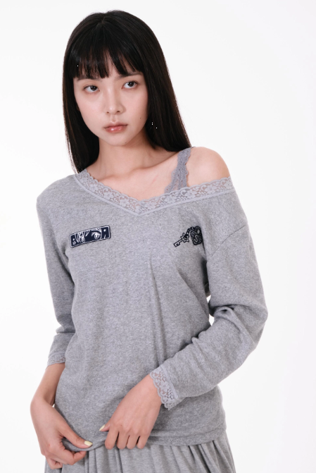 [SHALOM] GOTTI LACE TOP GRAY 正規品 韓国ブランド 韓国通販 韓国代行 韓国ファッション シャローム クラブ shalomclub SHALOM CLUB