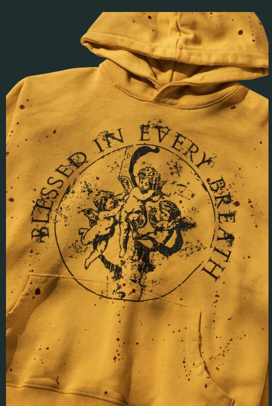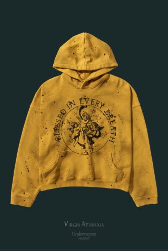 [UNDERMYCAR] 25FW BLESSED IN EVERY BREATH VTG HOODIE - YELLOW