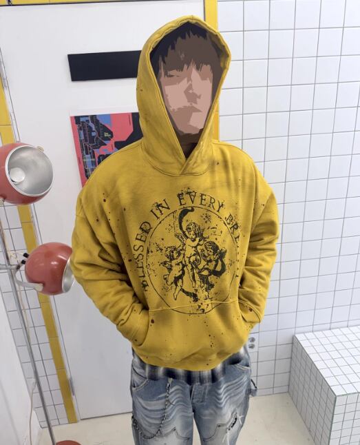 [UNDERMYCAR] 25FW BLESSED IN EVERY BREATH VTG HOODIE - YELLOW 正規品 韓国ブランド 韓国通販 韓国代行 韓国ファッション アンダーマイカー 日本 店舗