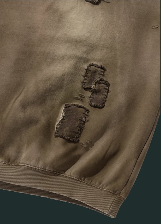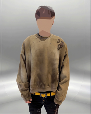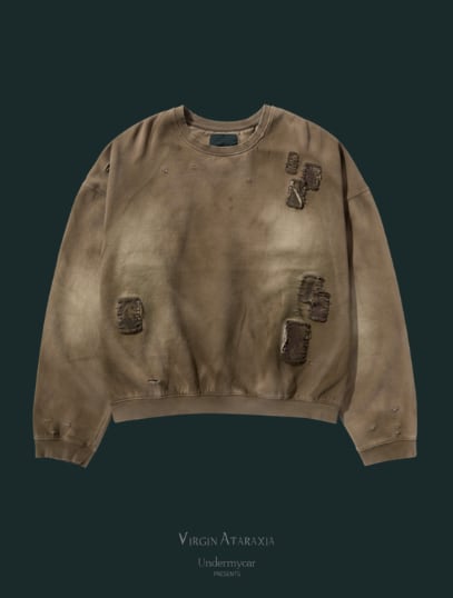[UNDERMYCAR] 25SS MULTI LITTLE PATCHES GRUNGE CREW NECK - DIRTY TAN