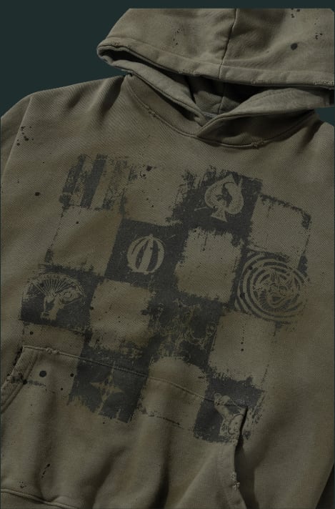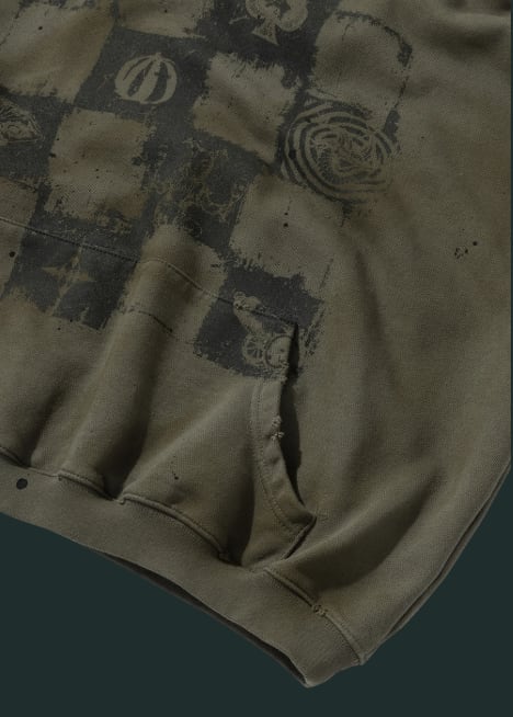 [UNDERMYCAR] 25FW CARNIVAL CHECKER BOARD VTG HOODIE - OLIVE