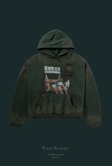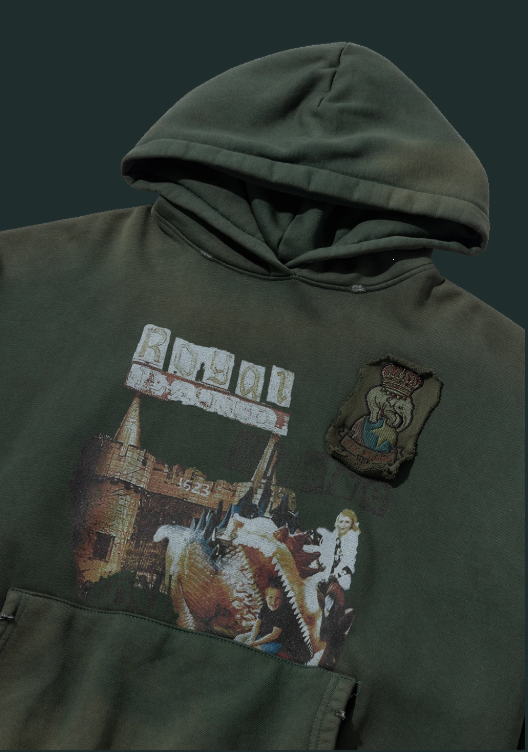 [UNDERMYCAR] 25FW FORGOTTEN CARNIVAL COLLAGE VTG HOODIE - DUSTY EMERALD