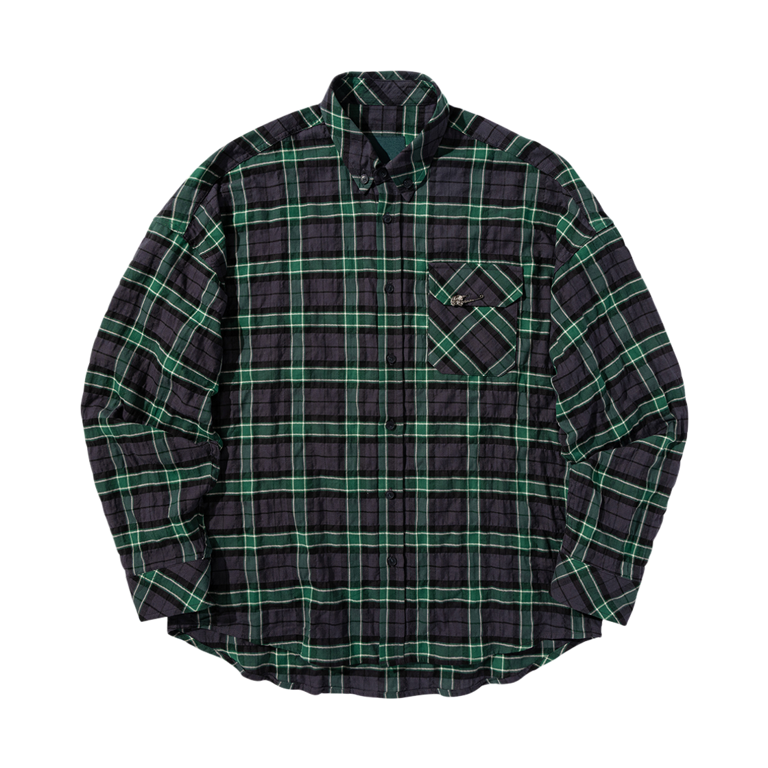 [UNDERMYCAR] 25FW BLACK ROSE PIN TARTAN CHECK SHIRTS - NAVY GREEN