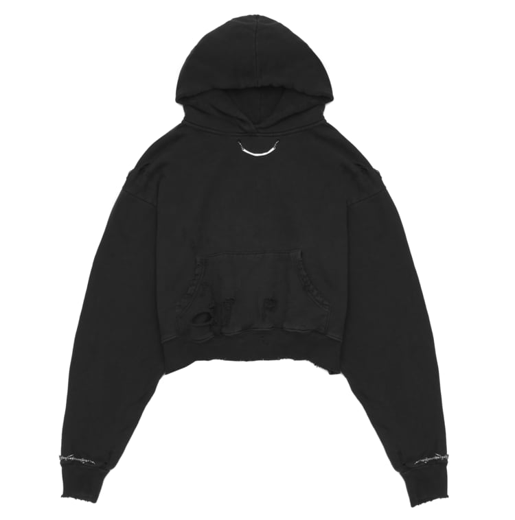 [604service] DISTRESSED JEWELRY HOODIE IN PIGMENT WASHED BLACK