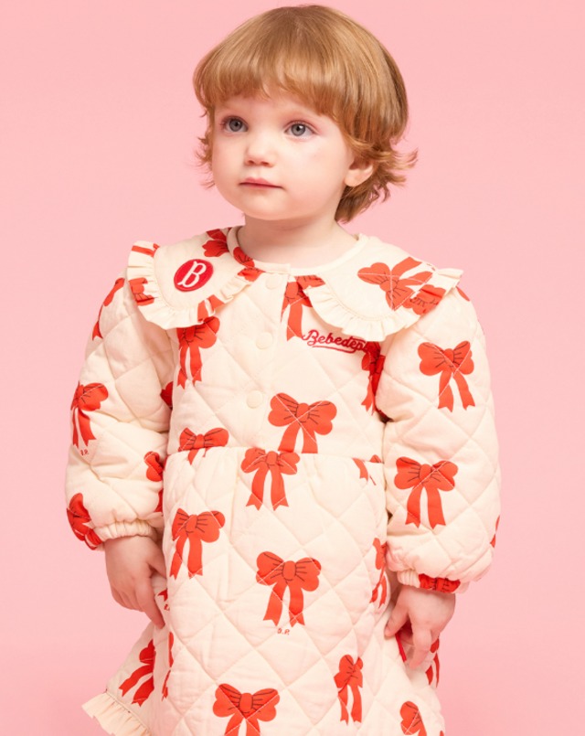 [BEBE DE PINO] All over ribbon baby big collar quilted dress 正規品 韓国ブランド 韓国ファッション 韓国代行 韓国通販 ベベドピノ bebedepino 日本 店舗 韓国 子供服