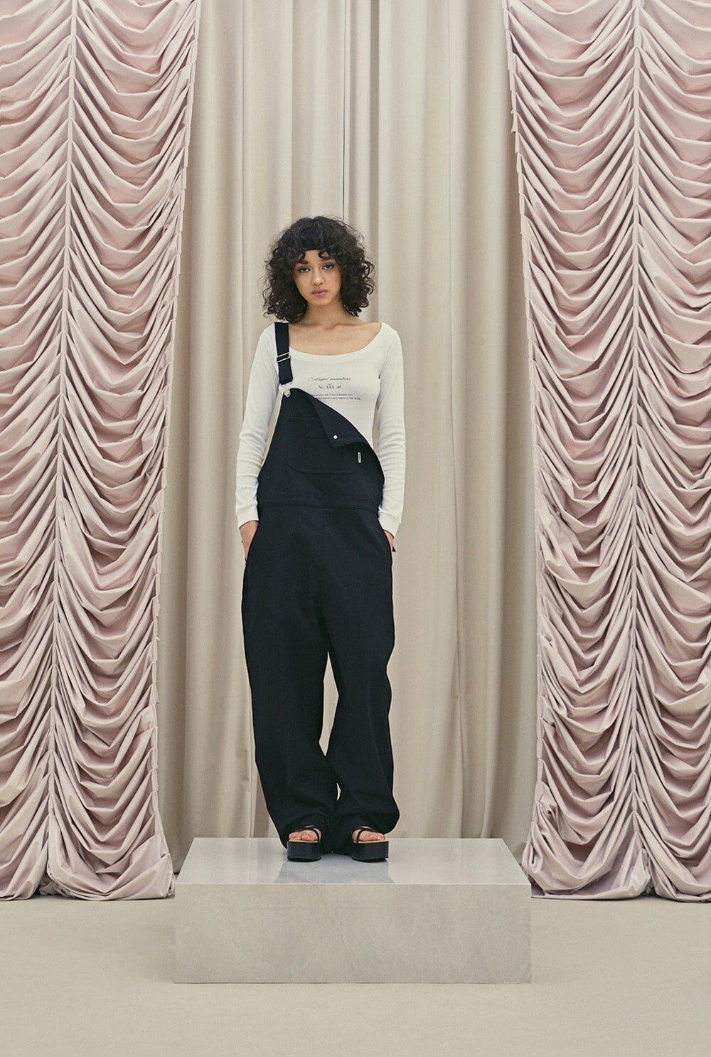 [threetimes] Frill baggy overalls (Black) 正規品 韓国ブランド 韓国通販 韓国代行 韓国ファッション スリータイムズ three times 日本 店舗