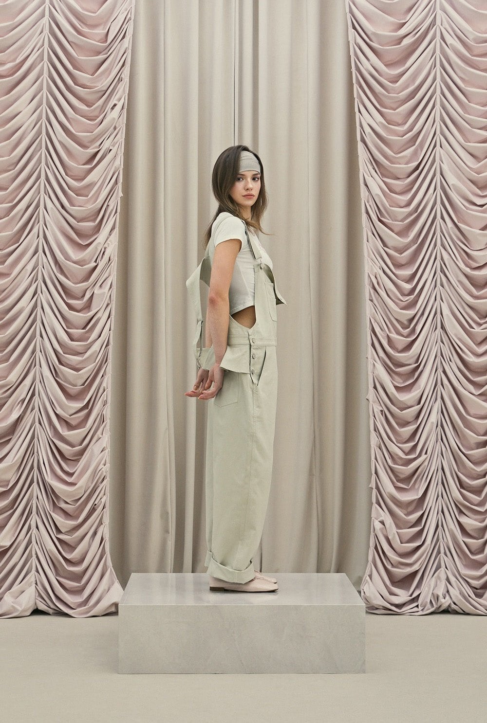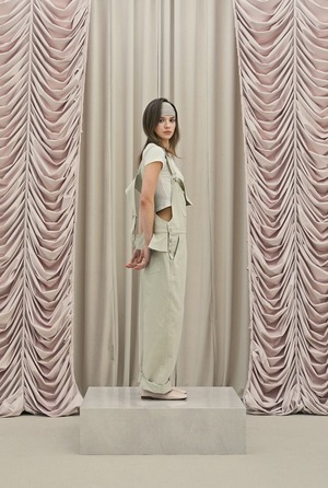 [threetimes] Frill baggy overalls (Beige) 正規品 韓国ブランド 韓国通販 韓国代行 韓国ファッション スリータイムズ three times 日本 店舗