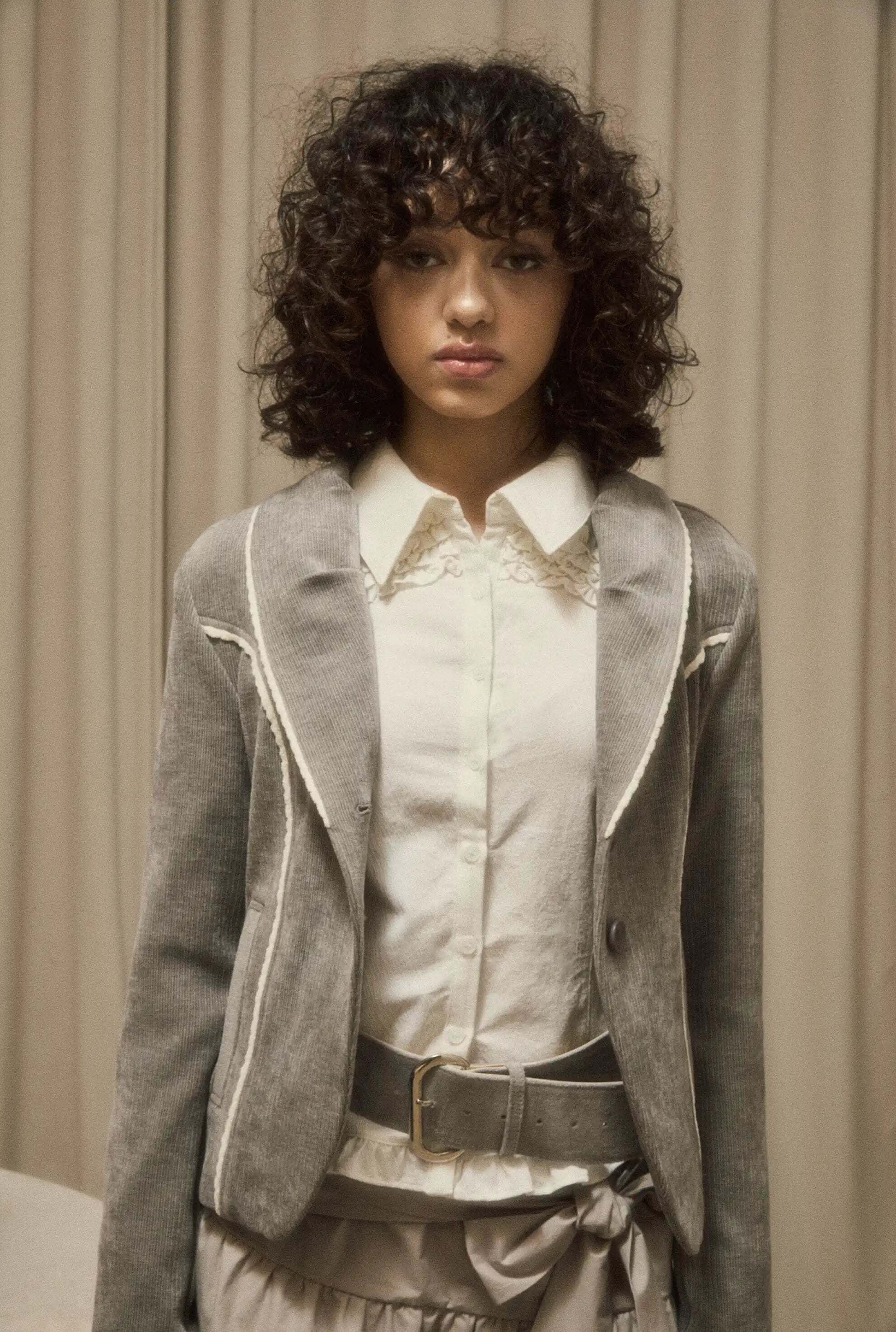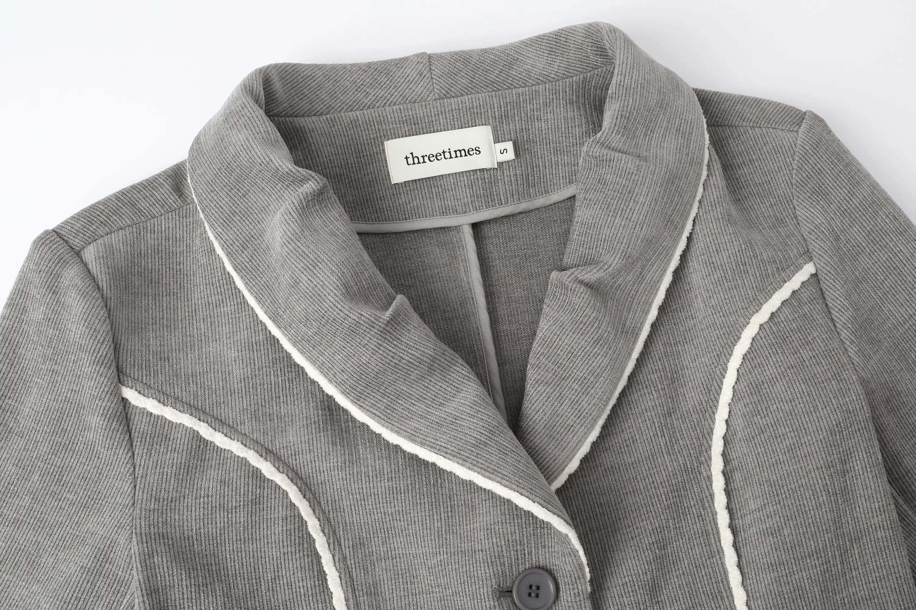 [threetimes] Dana trim jacket (Gray) 正規品 韓国ブランド 韓国通販 韓国代行 韓国ファッション スリータイムズ three times 日本 店舗