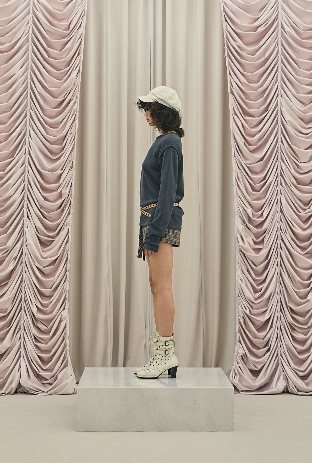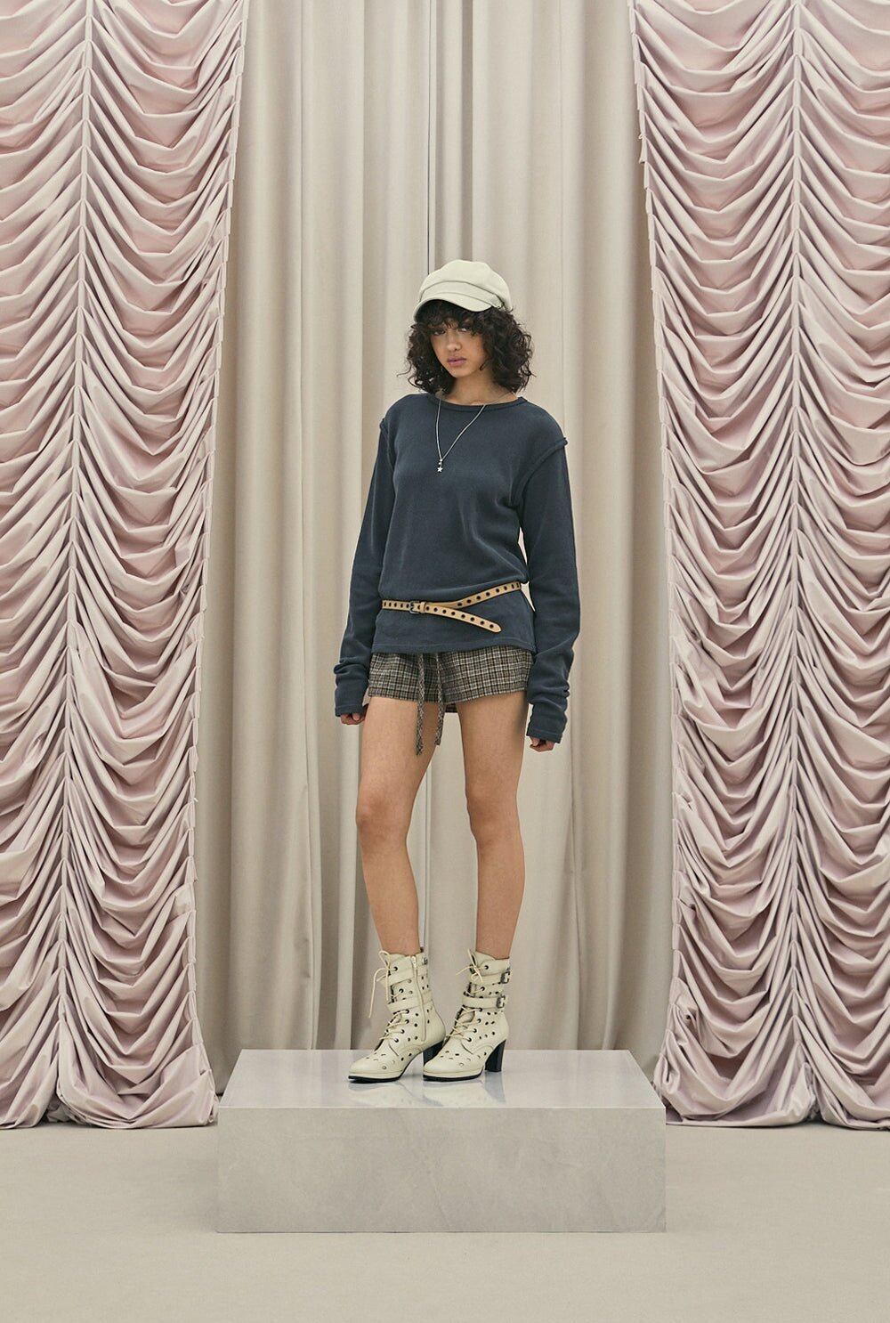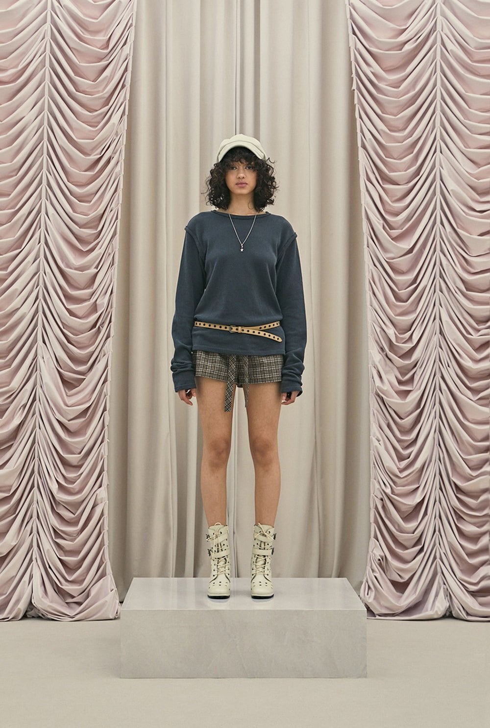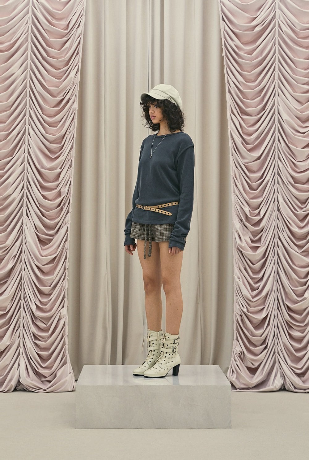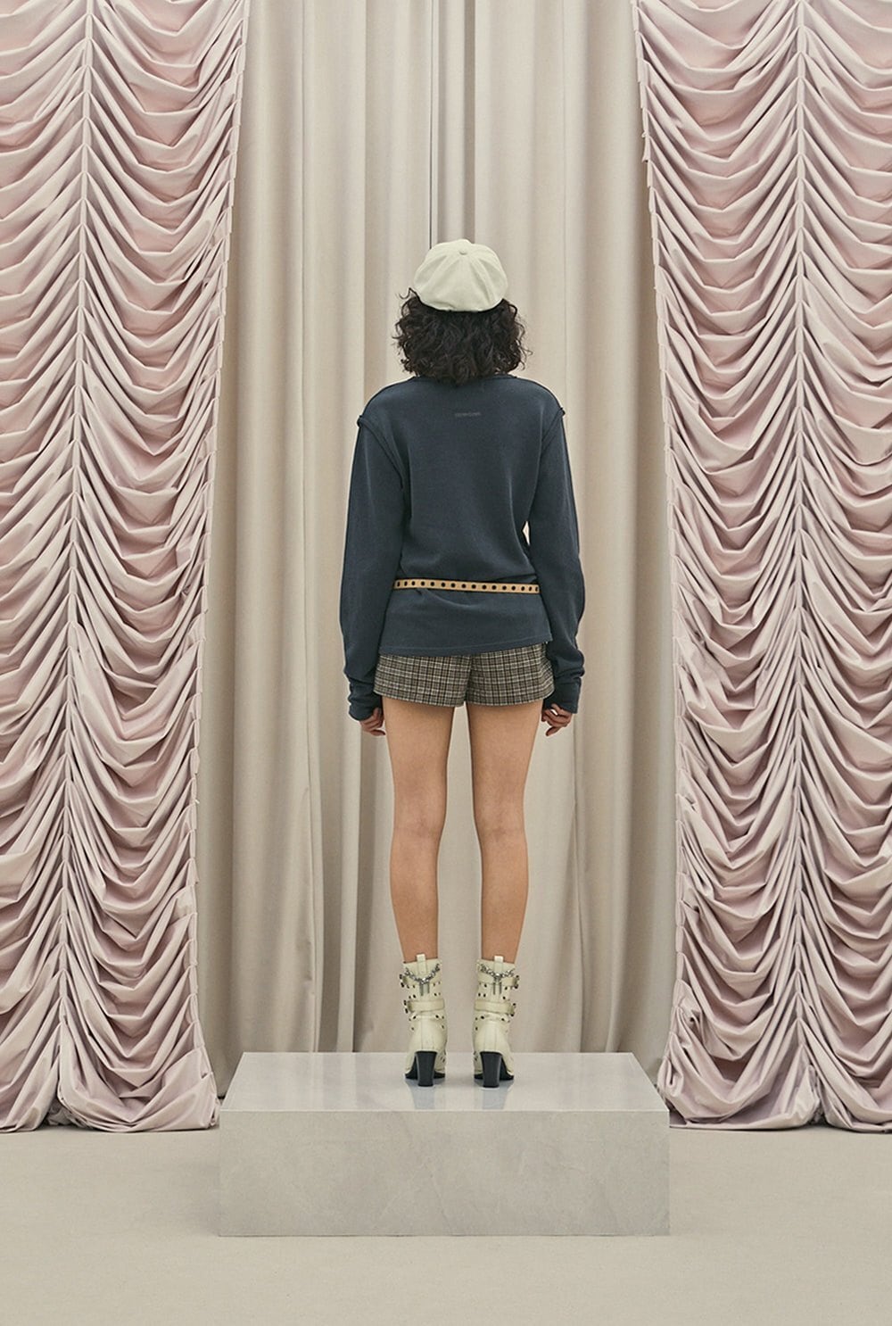 [threetimes] Waffle slim tee (Chacoal) 正規品 韓国ブランド 韓国通販 韓国代行 韓国ファッション スリータイムズ three times 日本 店舗