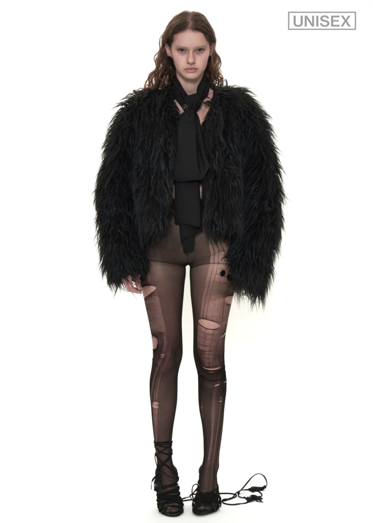 [604SERVICE] FUR JACKET WITH ARMY PATCH IN BLACK 正規品 韓国ブランド 韓国ファッション 韓国代行 604 サービス SERVICE 日本 店舗