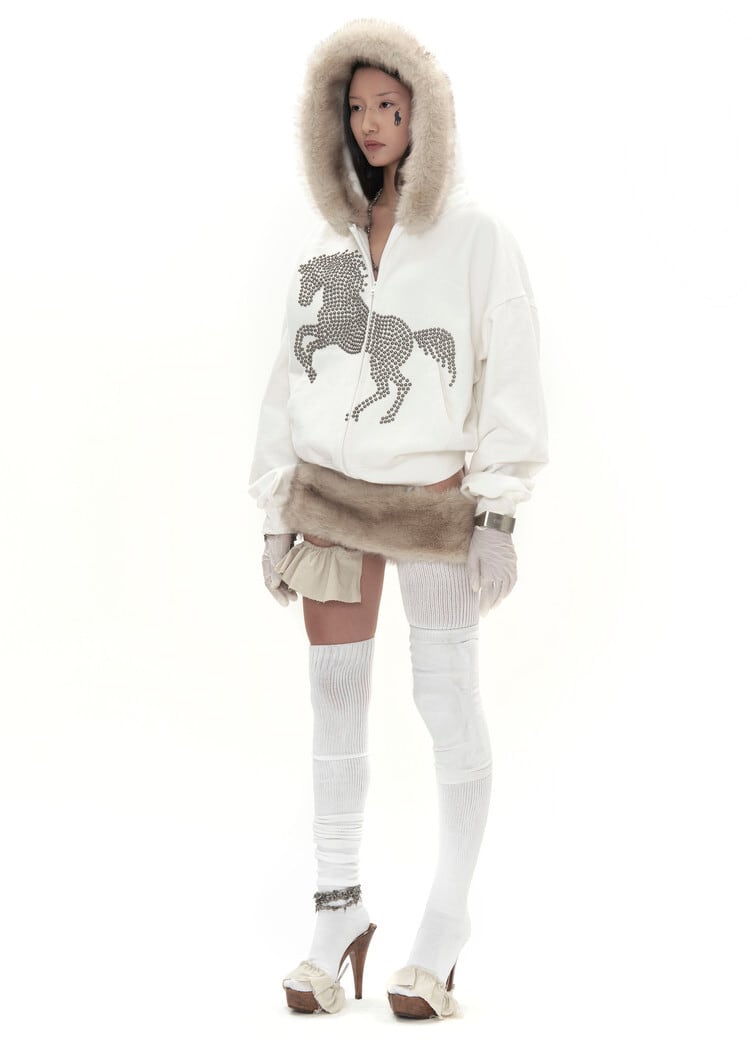 [604SERVICE] STUDDED FAUX FUR HOODIE IN BLACK 正規品 韓国ブランド 韓国ファッション 韓国代行 604 サービス SERVICE 日本 店舗