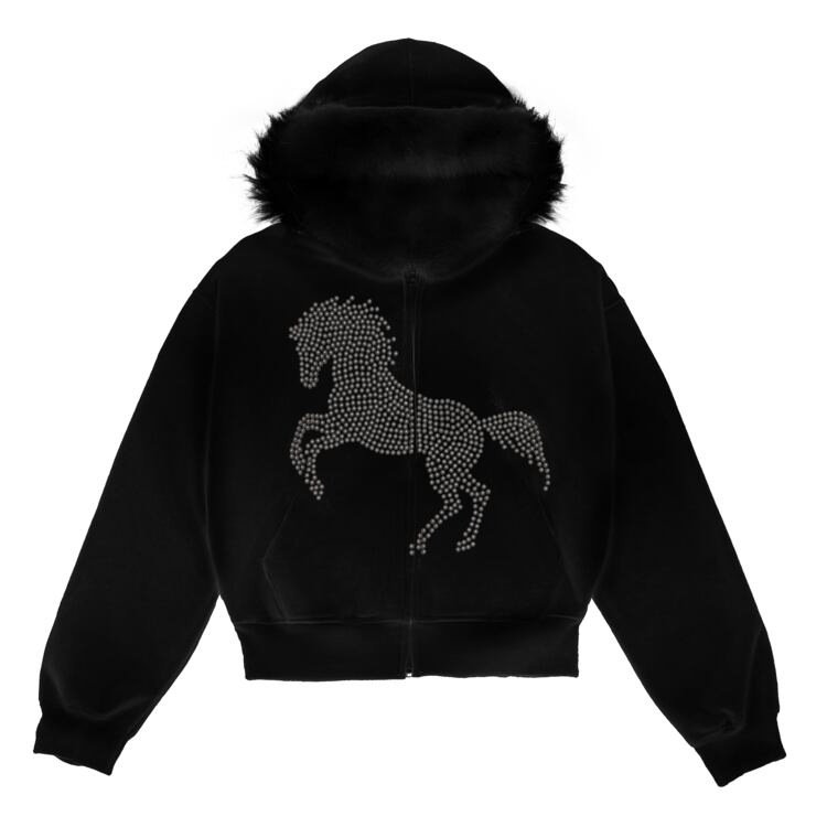 [604SERVICE] STUDDED FAUX FUR HOODIE IN BLACK