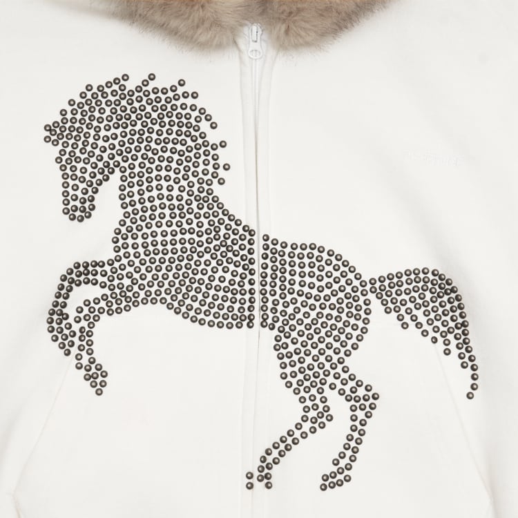 [604SERVICE] STUDDED FAUX FUR HOODIE IN WHITE