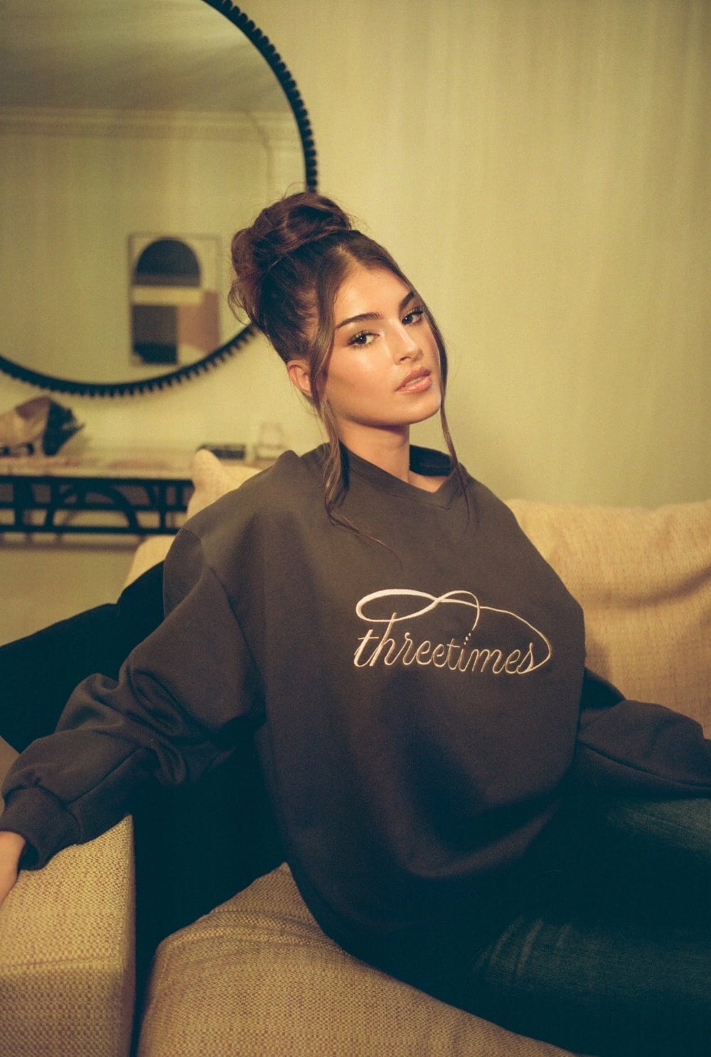 [threetimes] Dreamy logo sweatshirt (Chacoal) 正規品 韓国ブランド 韓国通販 韓国代行 韓国ファッション スリータイムズ three times 日本 店舗