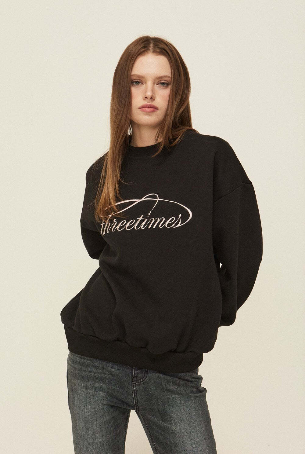 [threetimes] Dreamy logo sweatshirt (Black) 正規品 韓国ブランド 韓国通販 韓国代行 韓国ファッション スリータイムズ three times 日本 店舗