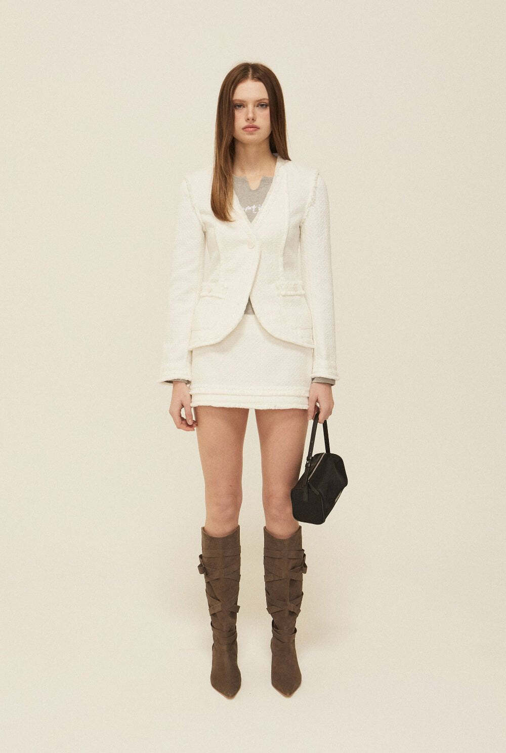 [threetimes] Carrie tweed jacket (ivory) 正規品 韓国ブランド 韓国通販 韓国代行 韓国ファッション スリータイムズ three times 日本 店舗