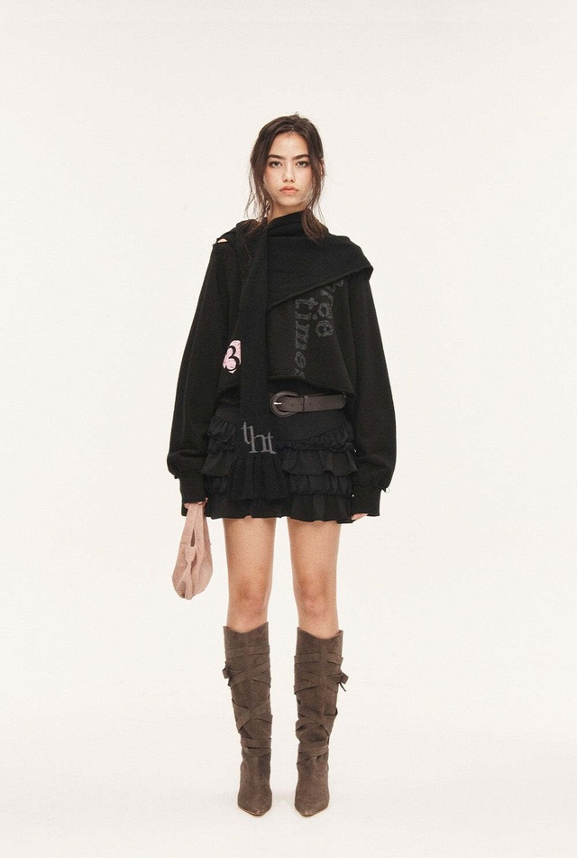 [threetimes] Lotus muffler (black) 正規品 韓国ブランド 韓国通販 韓国代行 韓国ファッション スリータイムズ three times 日本 店舗