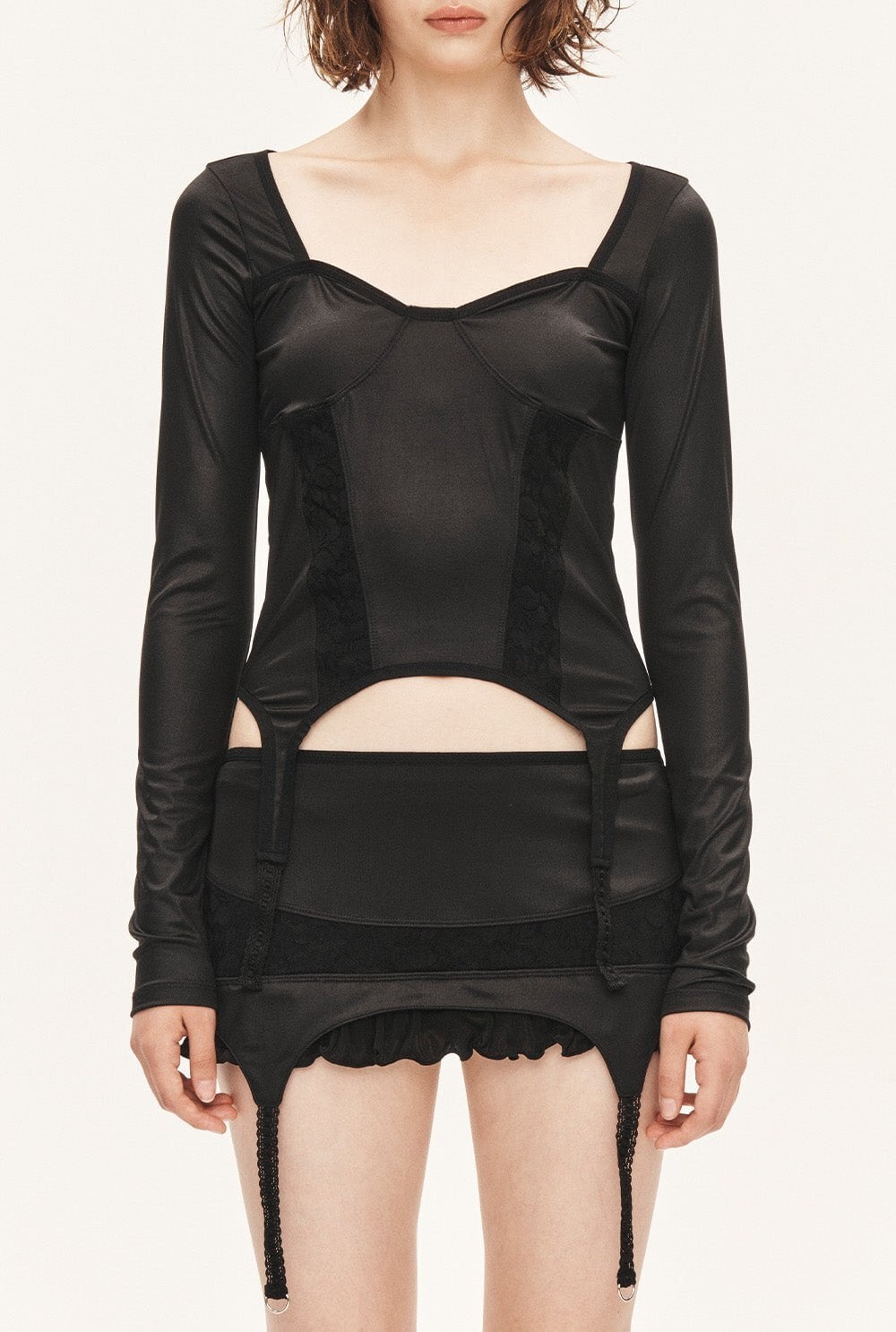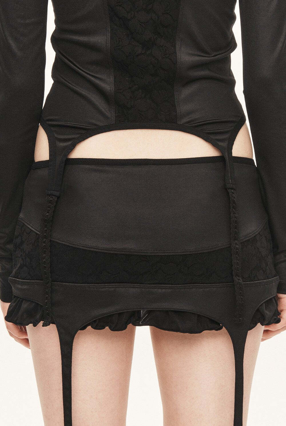 [threetimes] Lace garter skirt (black) 正規品 韓国ブランド 韓国通販 韓国代行 韓国ファッション スリータイムズ three times 日本 店舗