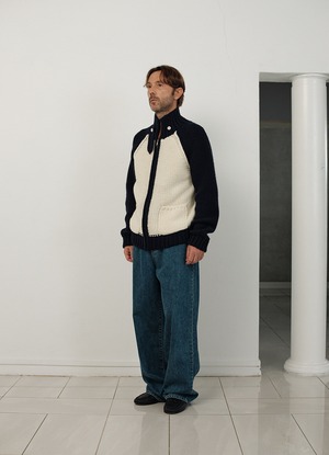 [The Barnnet] Oversized Soap Trim Zip-Up Knit Cardigan