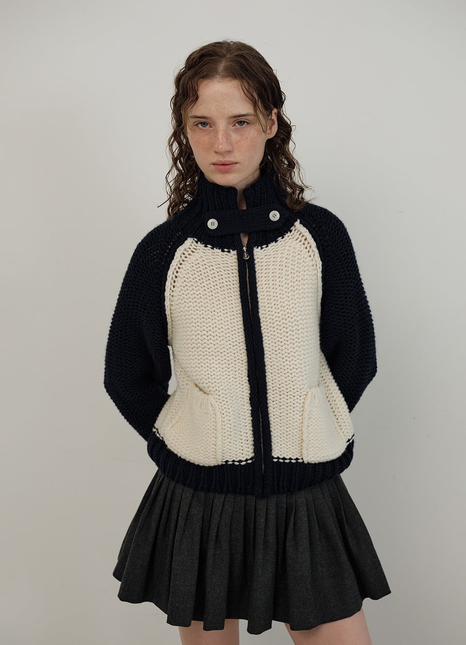 [The Barnnet] Soap Trim Zip-Up Knit Cardigan