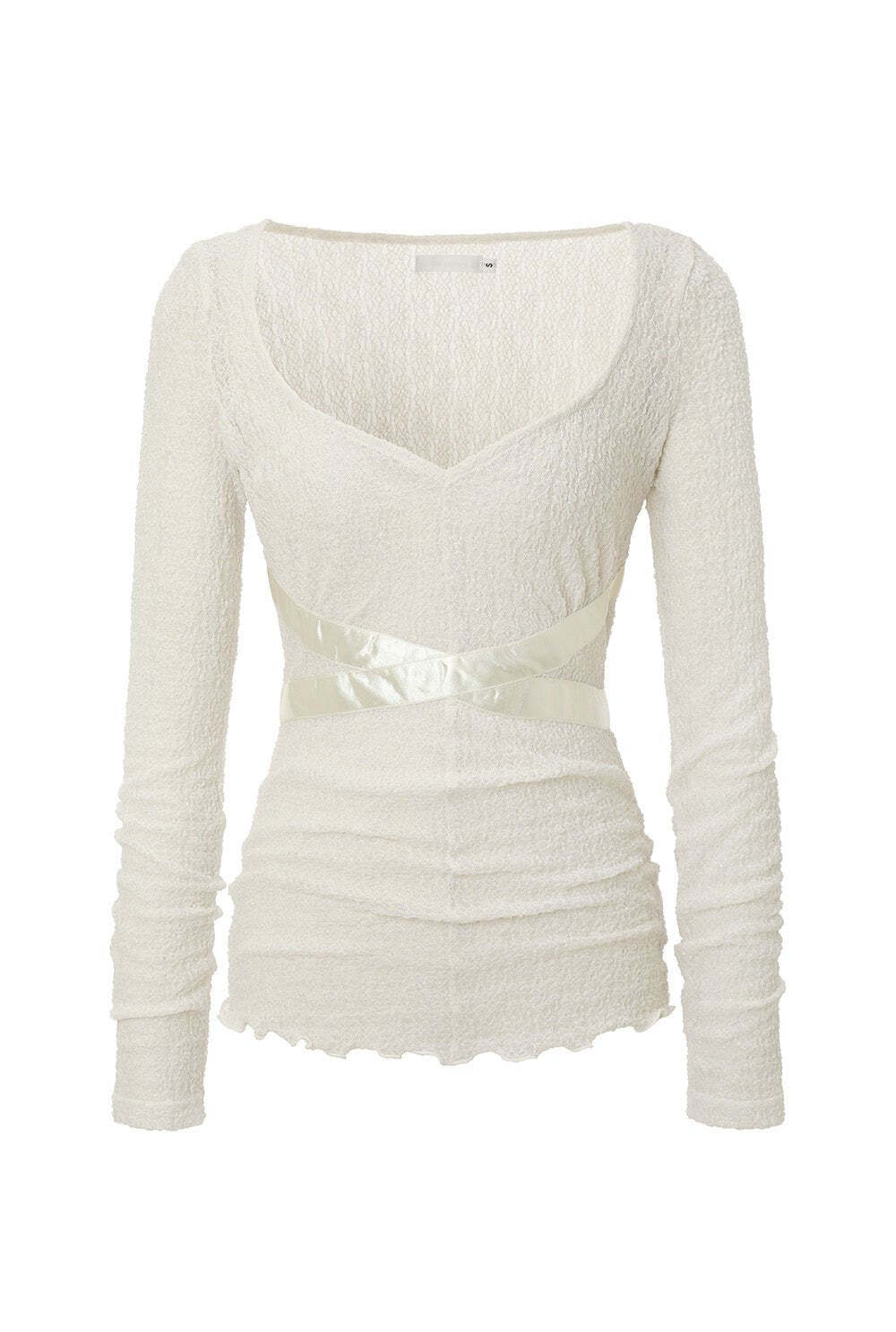 [threetimes] Cross pearl top (ivory) 正規品 韓国ブランド 韓国通販 韓国代行 韓国ファッション スリータイムズ three times 日本 店舗