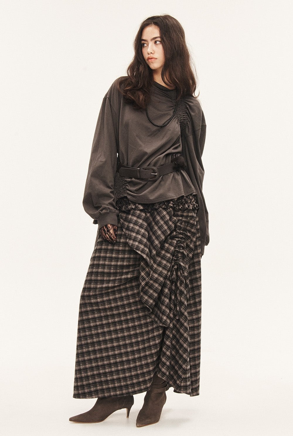 [threetimes] Tartan soup skirt (brown) 正規品 韓国ブランド 韓国通販 韓国代行 韓国ファッション スリータイムズ three times 日本 店舗