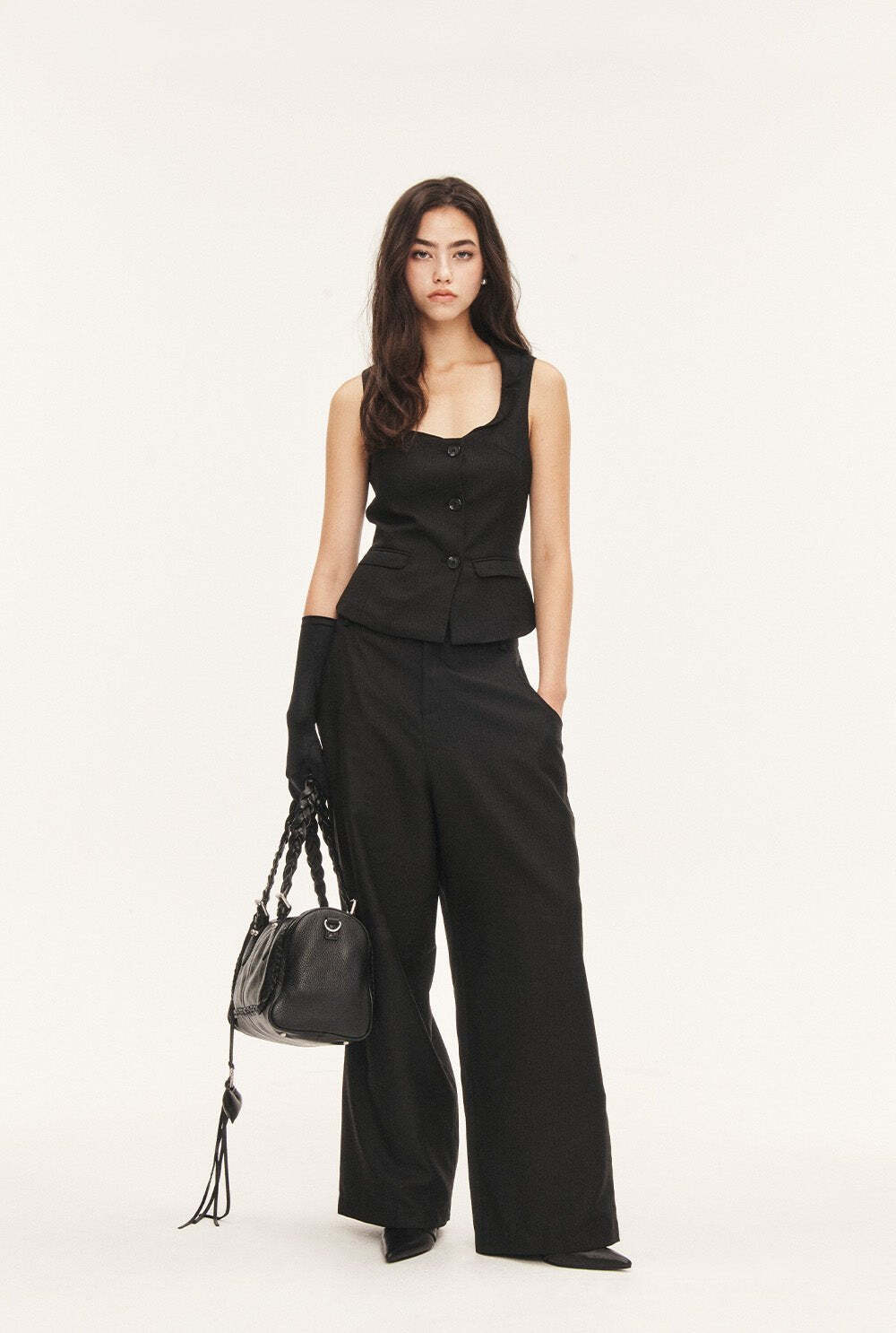 [threetimes] Muse stripe trouser (black) 正規品 韓国ブランド 韓国通販 韓国代行 韓国ファッション スリータイムズ three times 日本 店舗